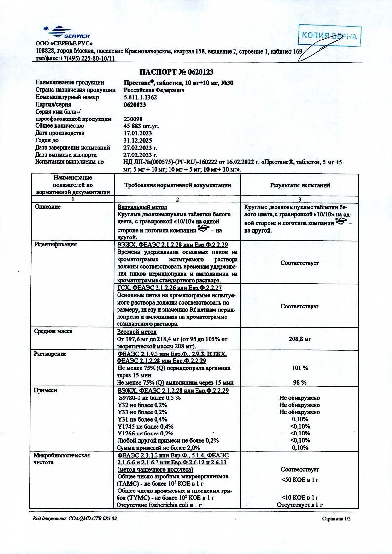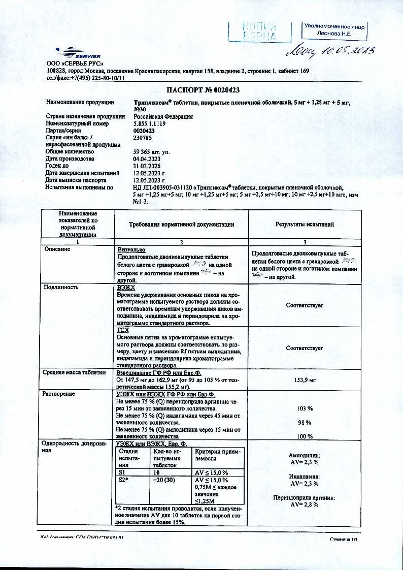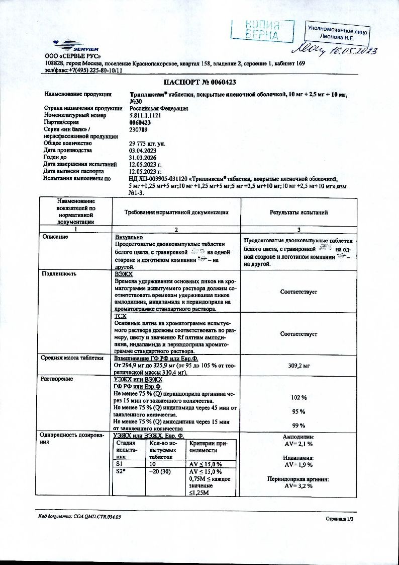 Трипликсам 5 мг + 2,5 мг + 10 мг 30 шт таблетки покрытые пленочной оболочкой