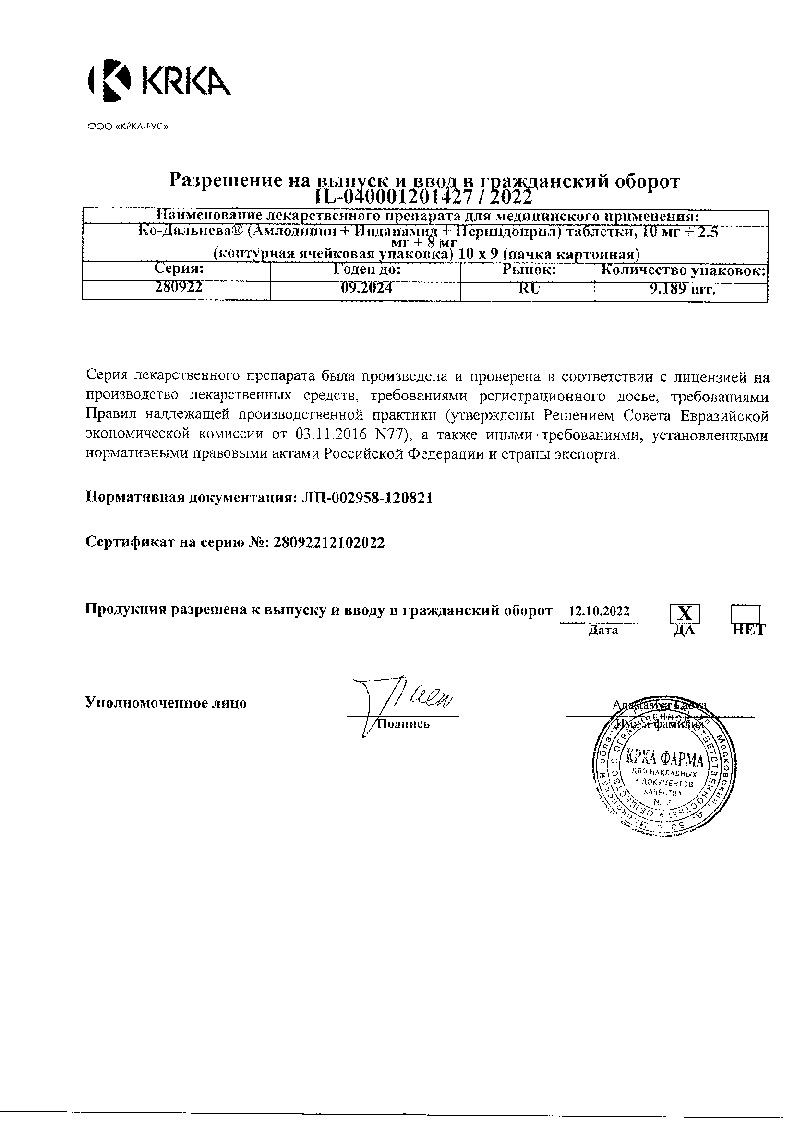 Ко-Дальнева 5 мг + 0,625 мг + 2 мг 30 шт таблетки
