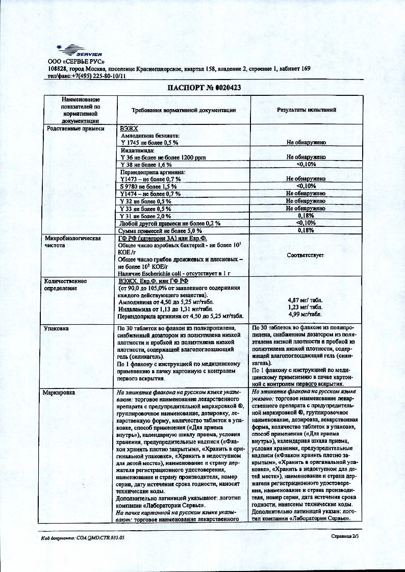 Арифам 5 мг + 1,5 мг 30 шт таблетки покрытые пленочной оболочкой с модифицированным высвобождением