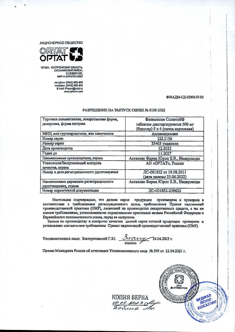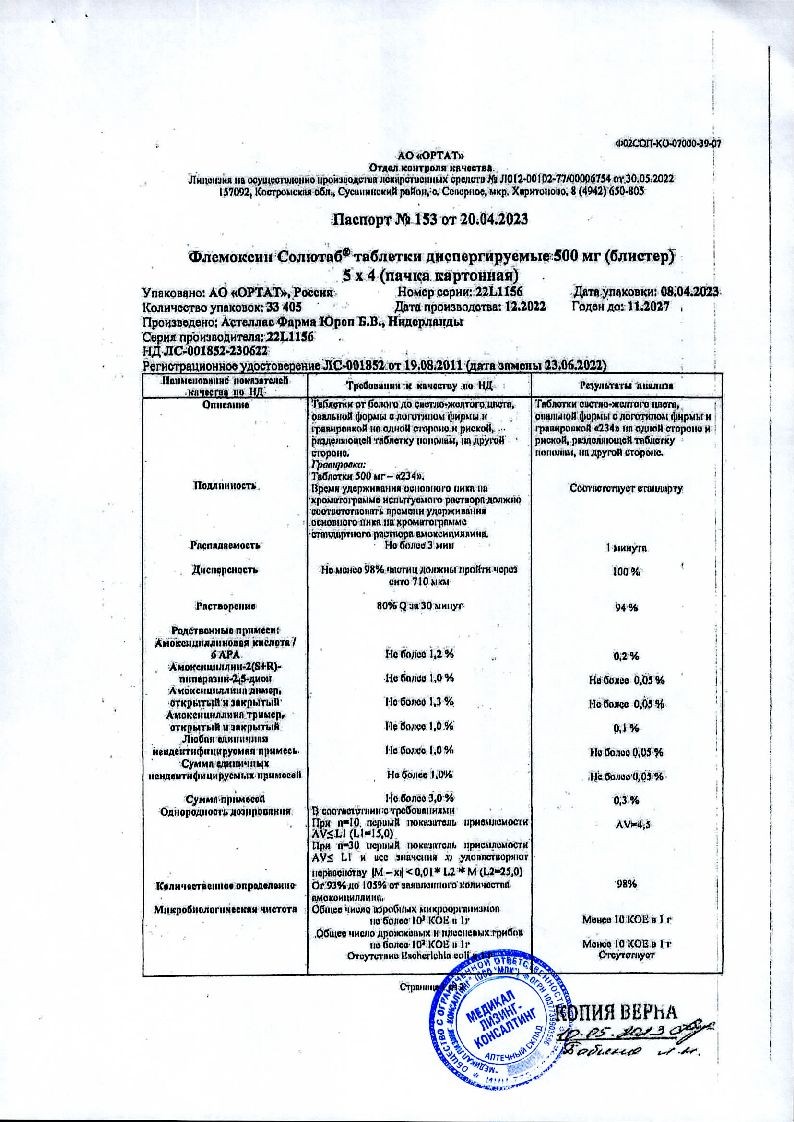 Флемоксин Солютаб 500 мг 20 шт таблетки диспергируемые