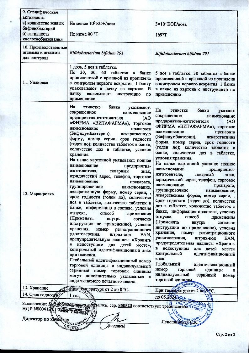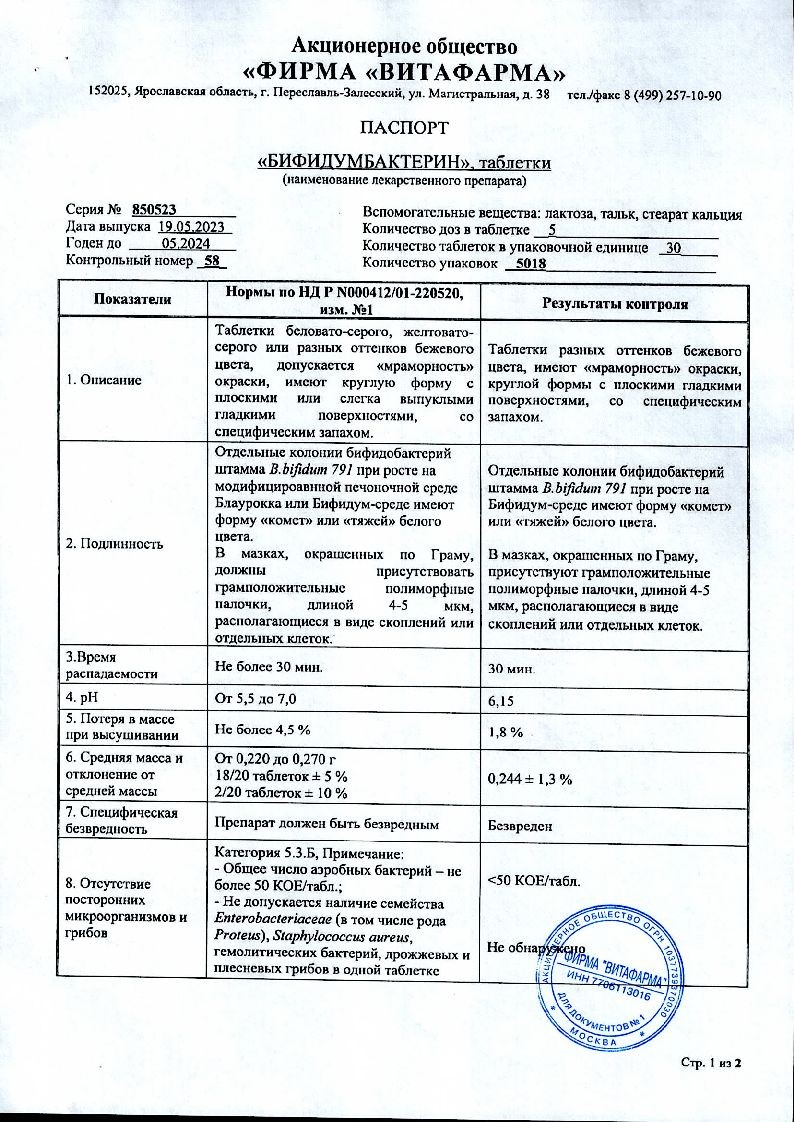 Бифидумбактерин 5 доз 30 шт таблетки