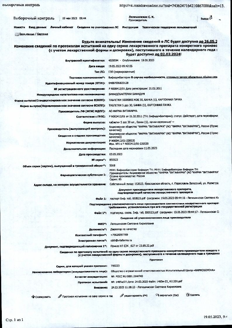 Бифидумбактерин 5 доз 10 шт лиофилизат для приготовления суспензии для приема внутрь и местного применения флакон