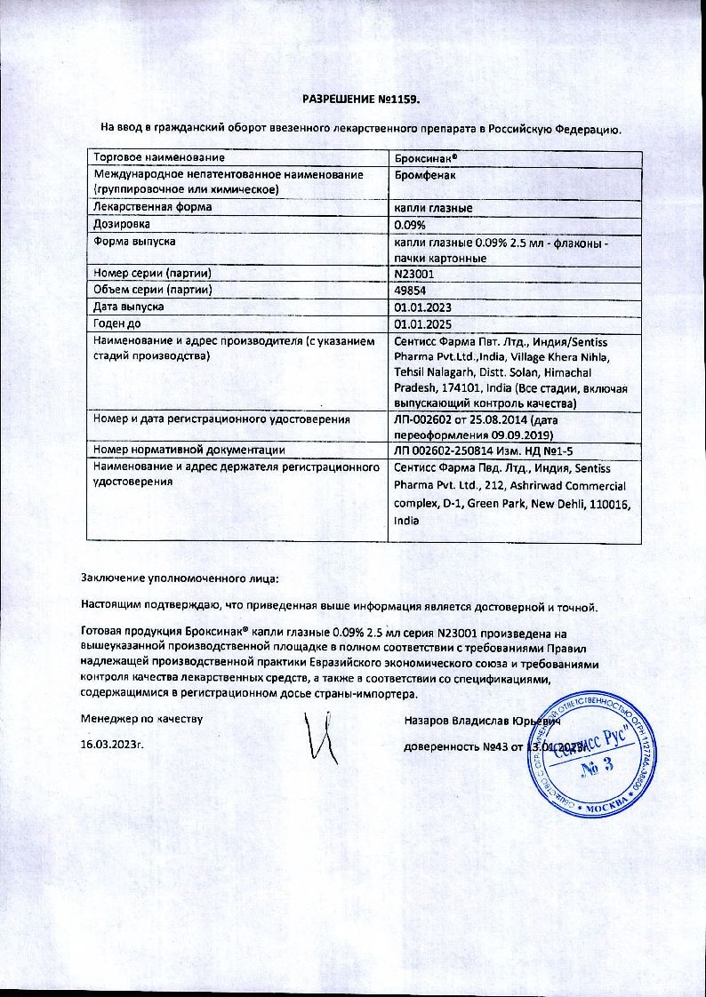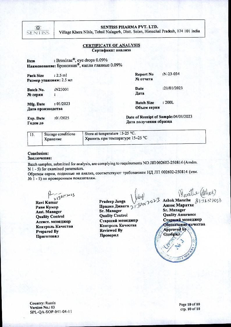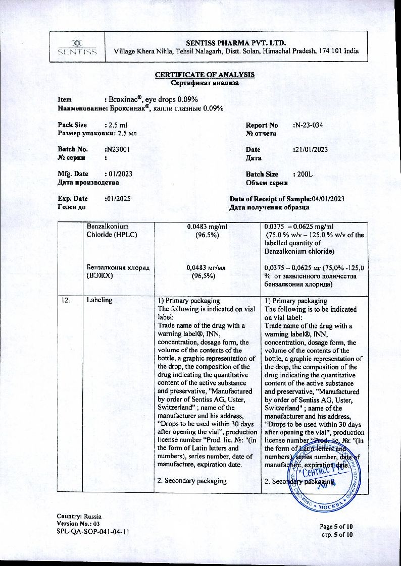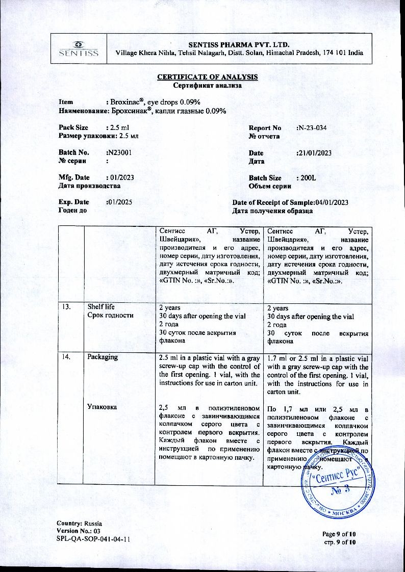 Бромфенак-СЗ 0,09 % 5 мл капли глазные