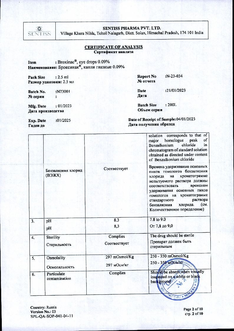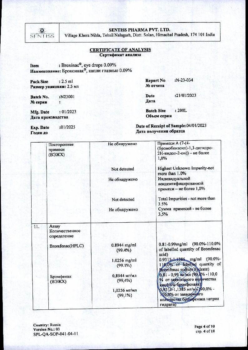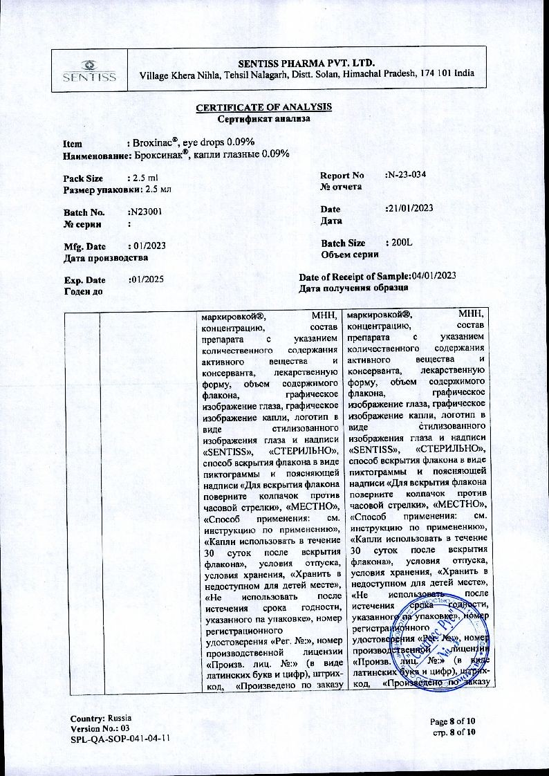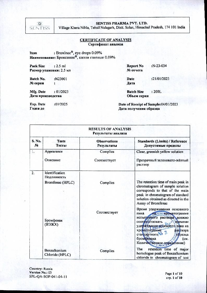 Бромфенак-СЗ 0,09 % 5 мл капли глазные