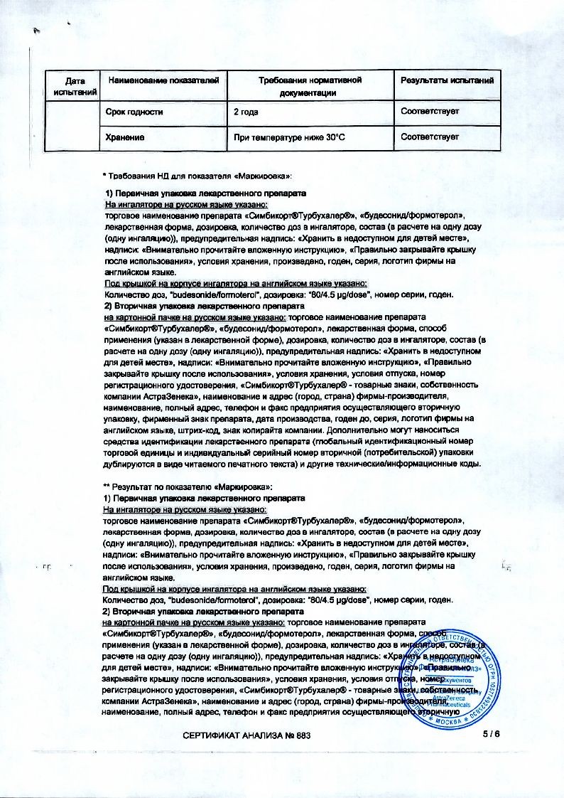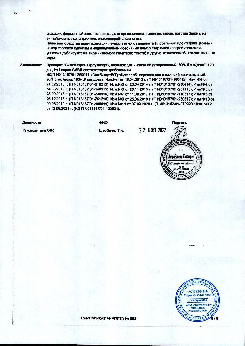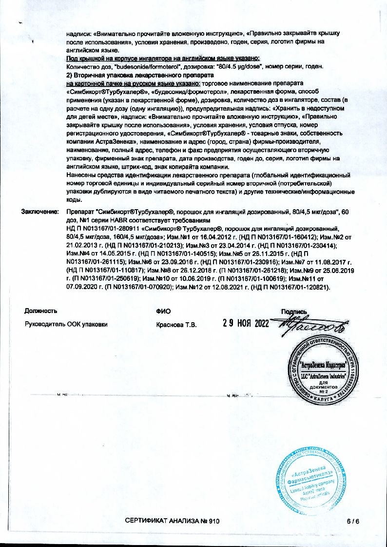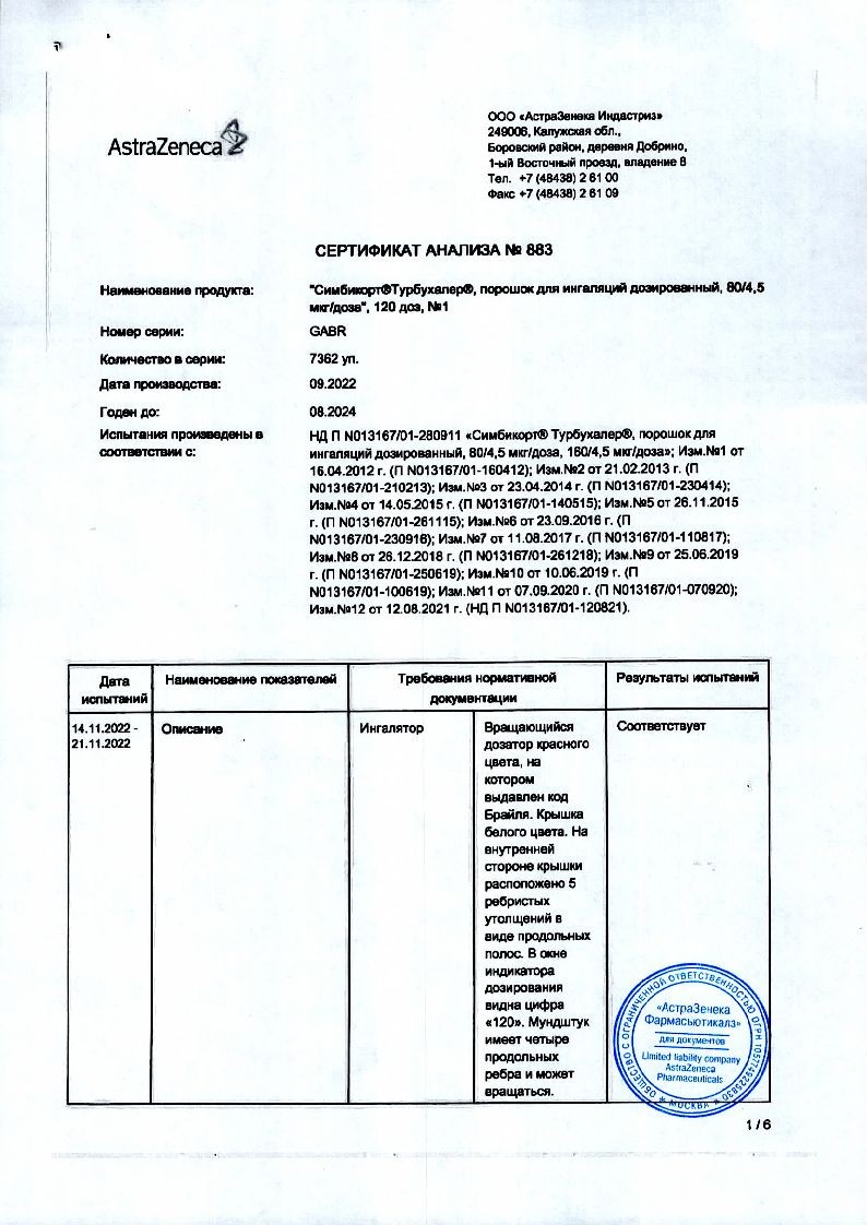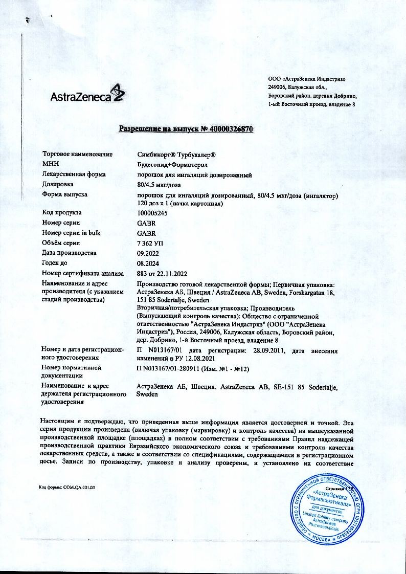 Симбикорт Турбухалер 80 мкг + 4,5 мкг 120 доз порошок для ингаляций дозированный