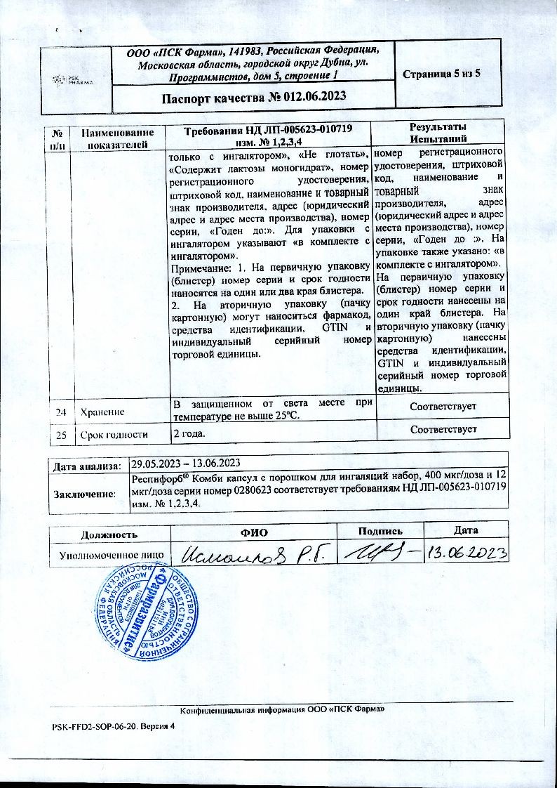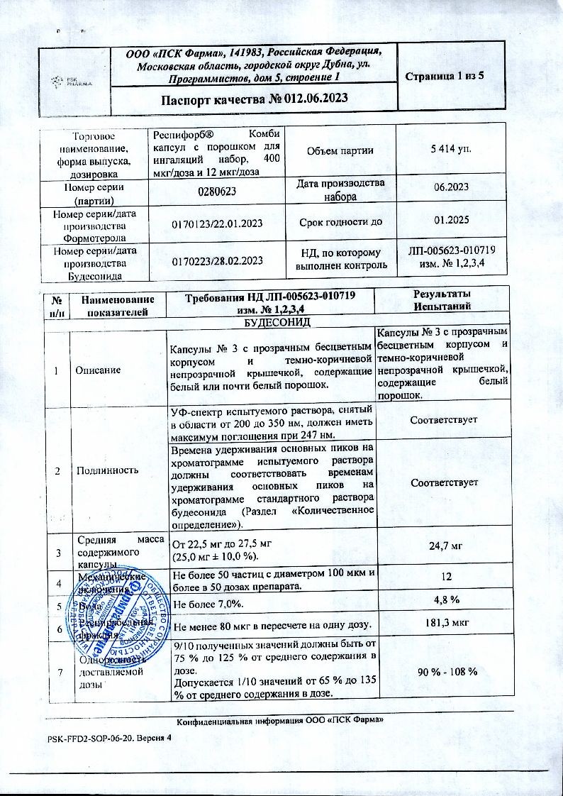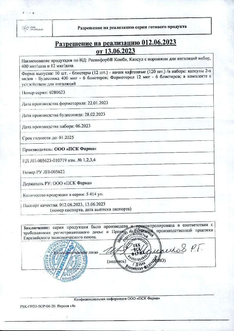 Респифорб Комби 400 мкг/доза + 12 мкг/доза 60 шт + 60 шт набор капсул + устройство для ингаляций