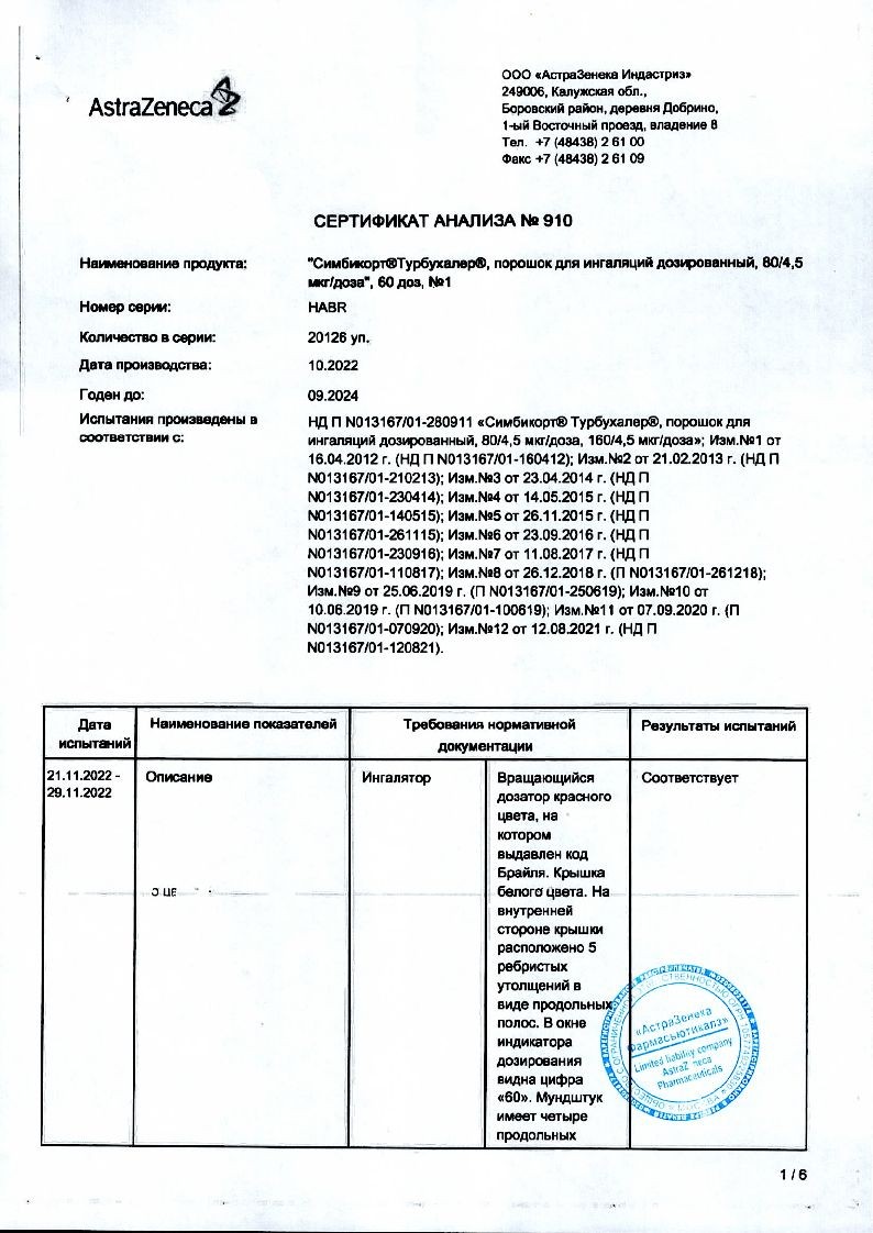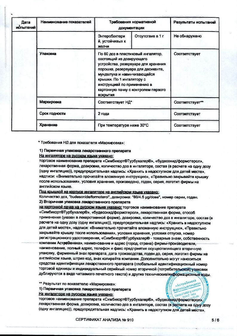 Симбикорт Турбухалер 160 мкг + 4,5 мкг 60 доз порошок для ингаляций дозированный