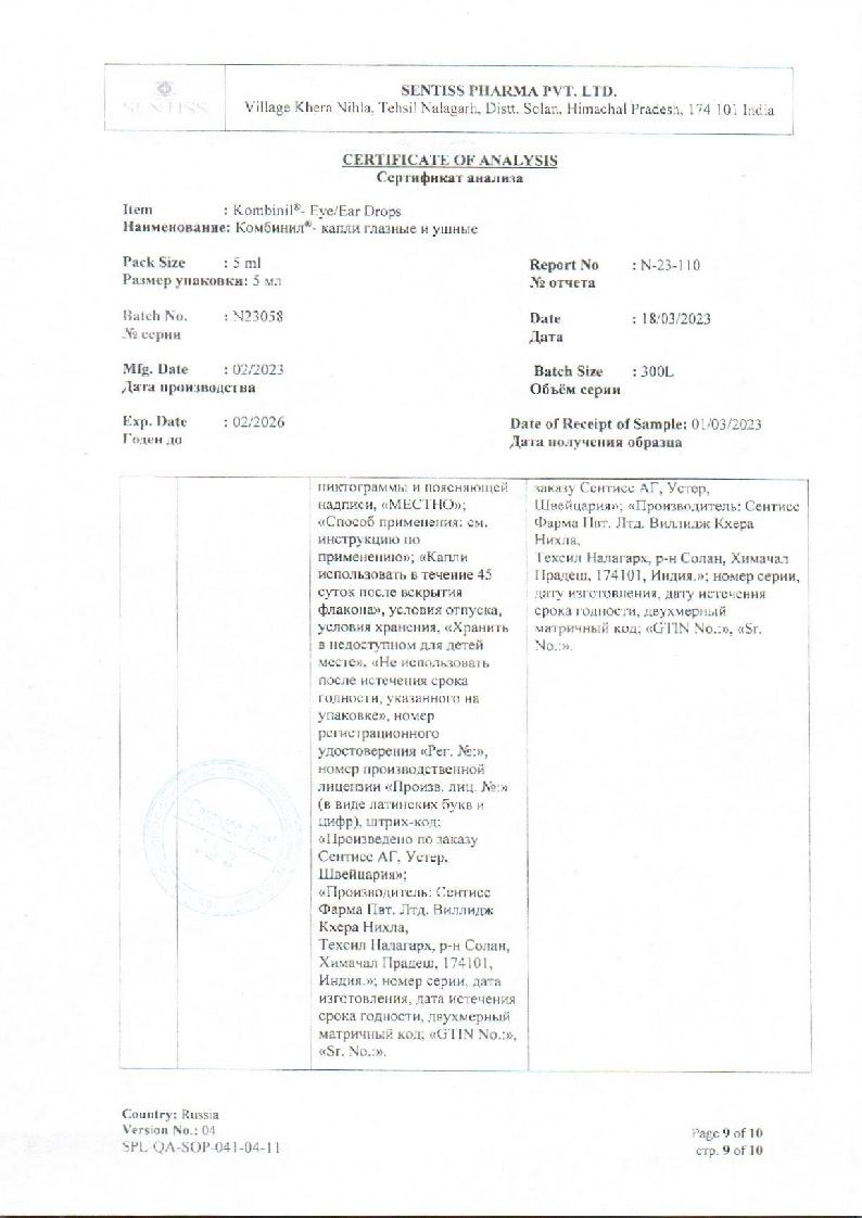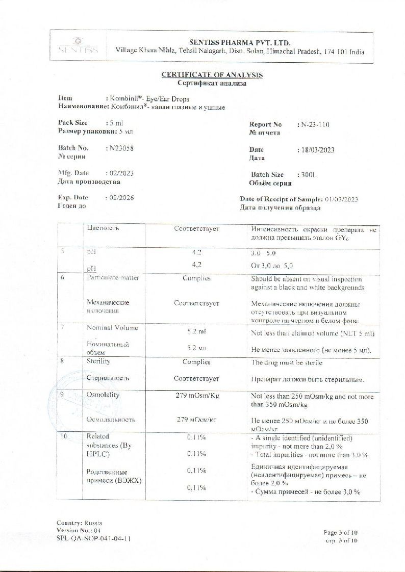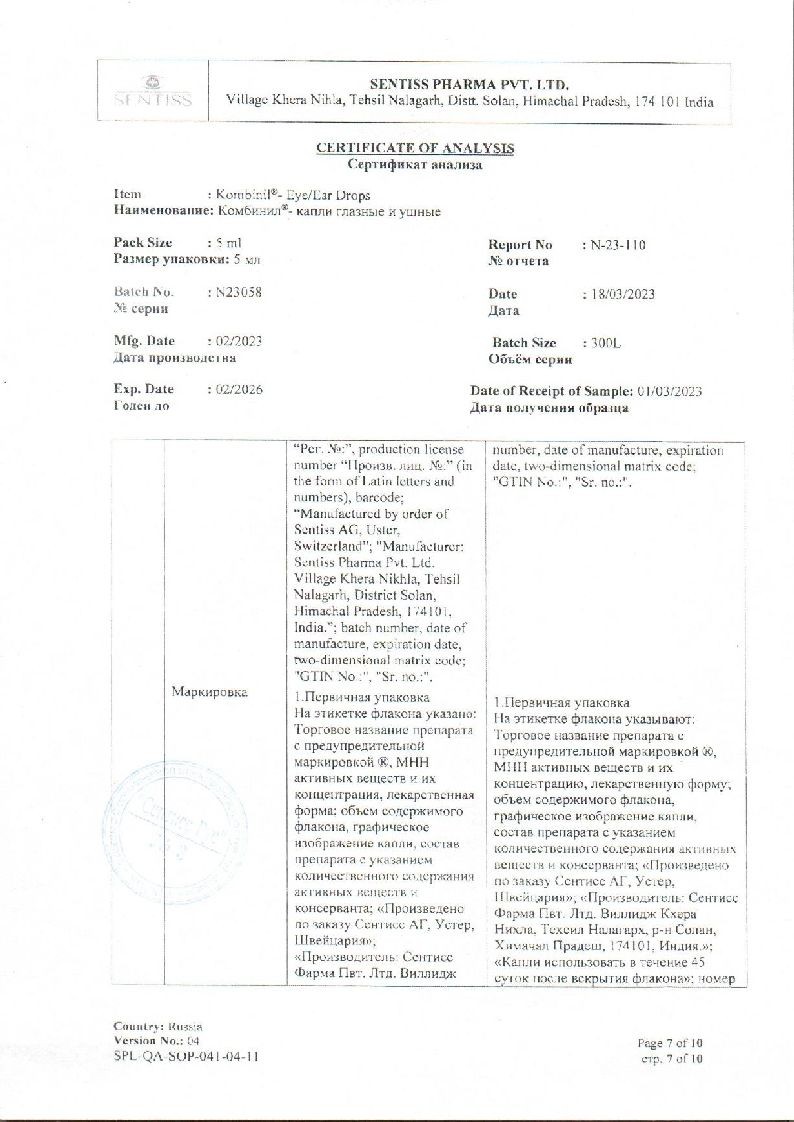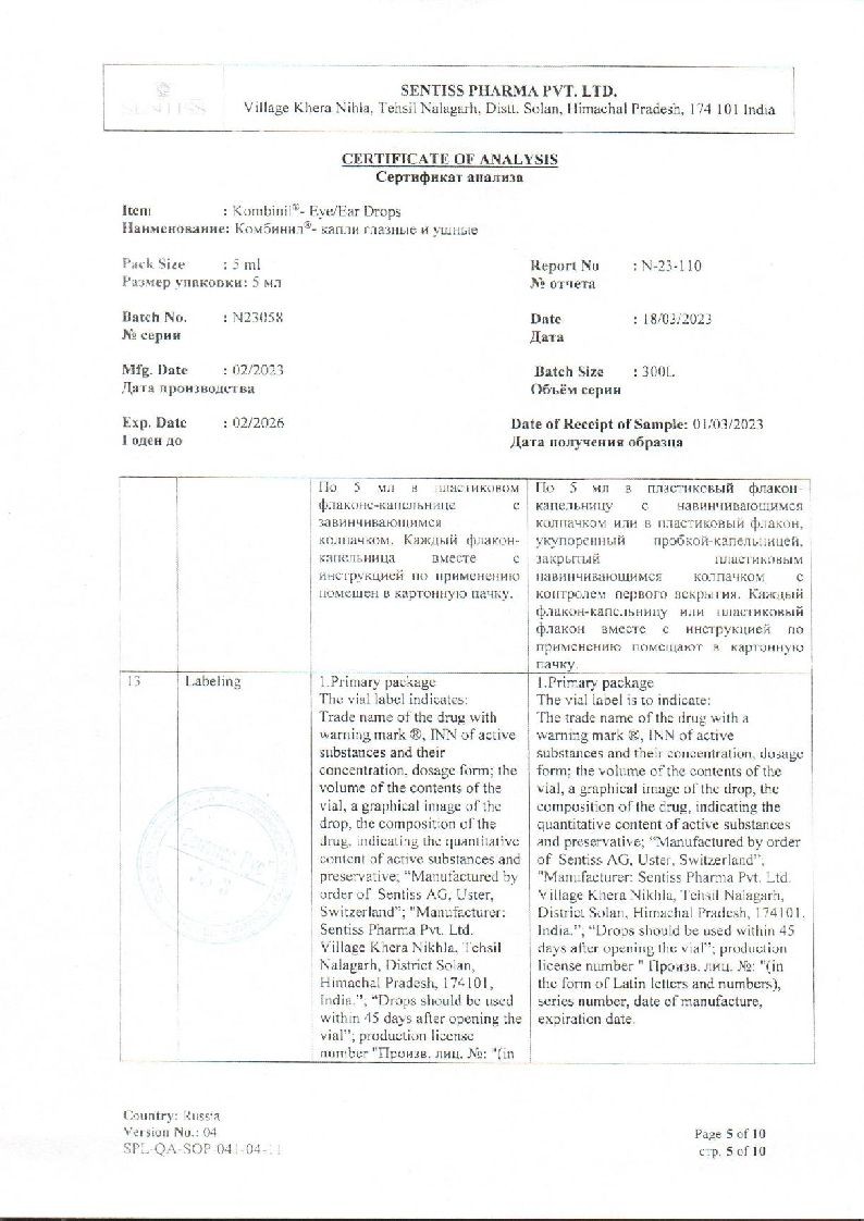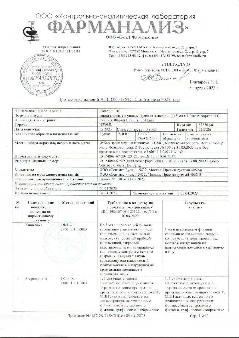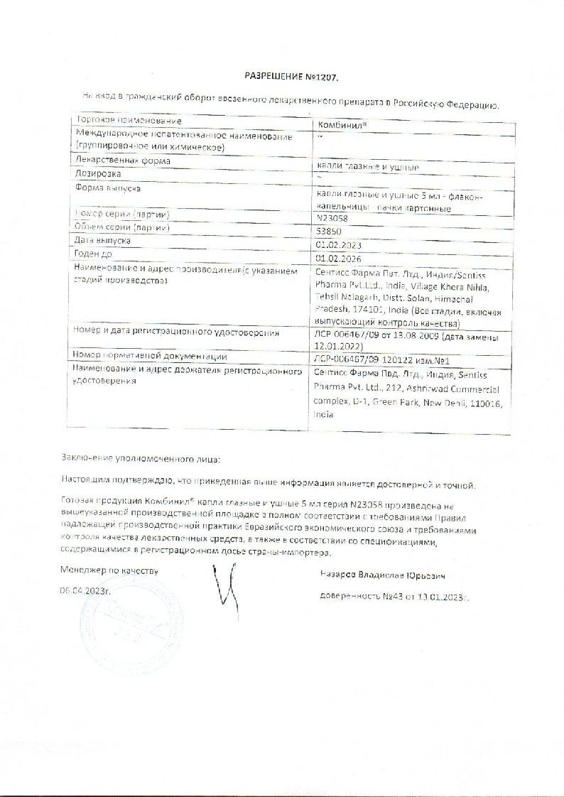 Комбинил 5 мл капли глазные и ушные флакон-капельница