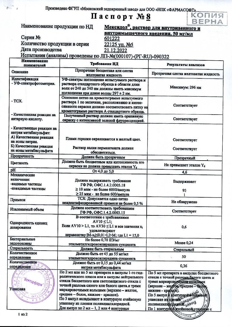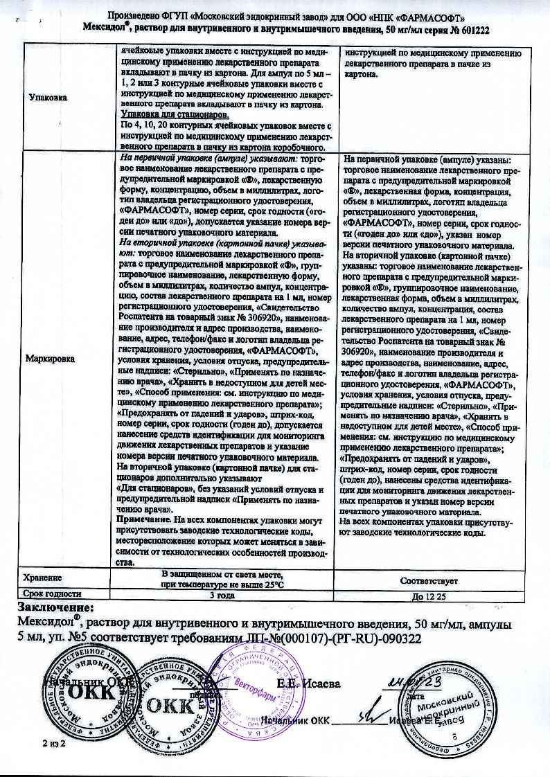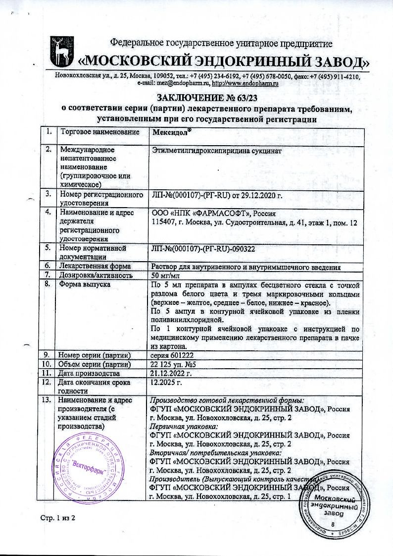 Мексидол 5% 5 мл 5 шт раствор для внутривенного и внутримышечного введения ампулы