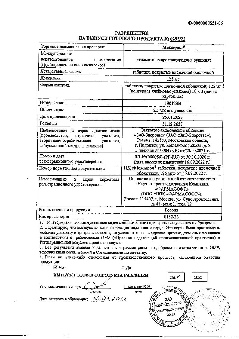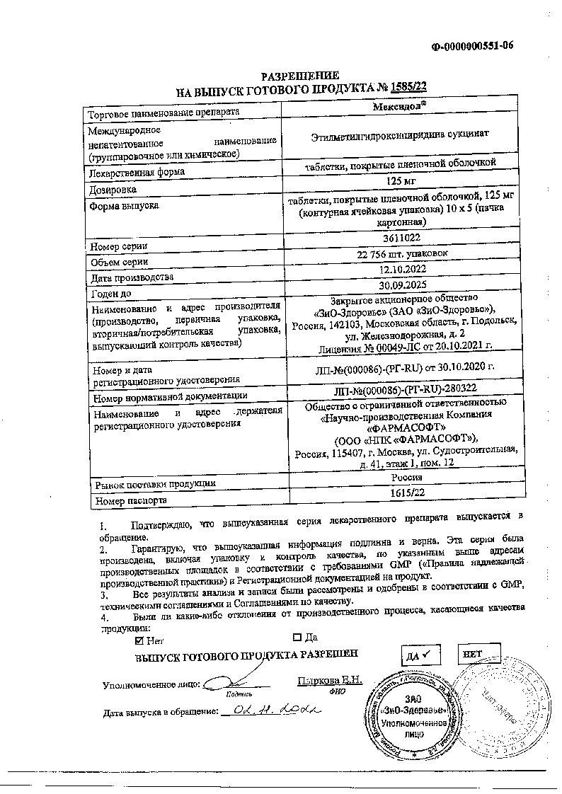Мексидол 125 мг 30 шт таблетки покрытые оболочкой