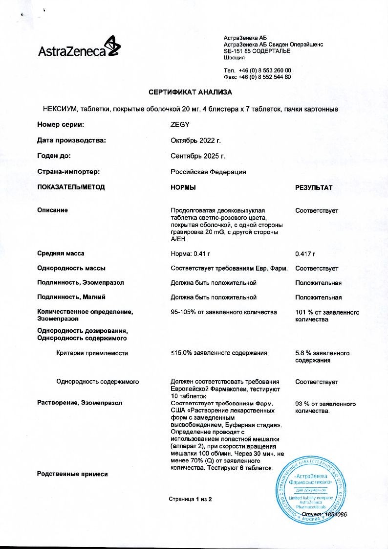Нексиум 20 мг 28 шт таблетки кишечнорастворимые покрытые пленочной оболочкой