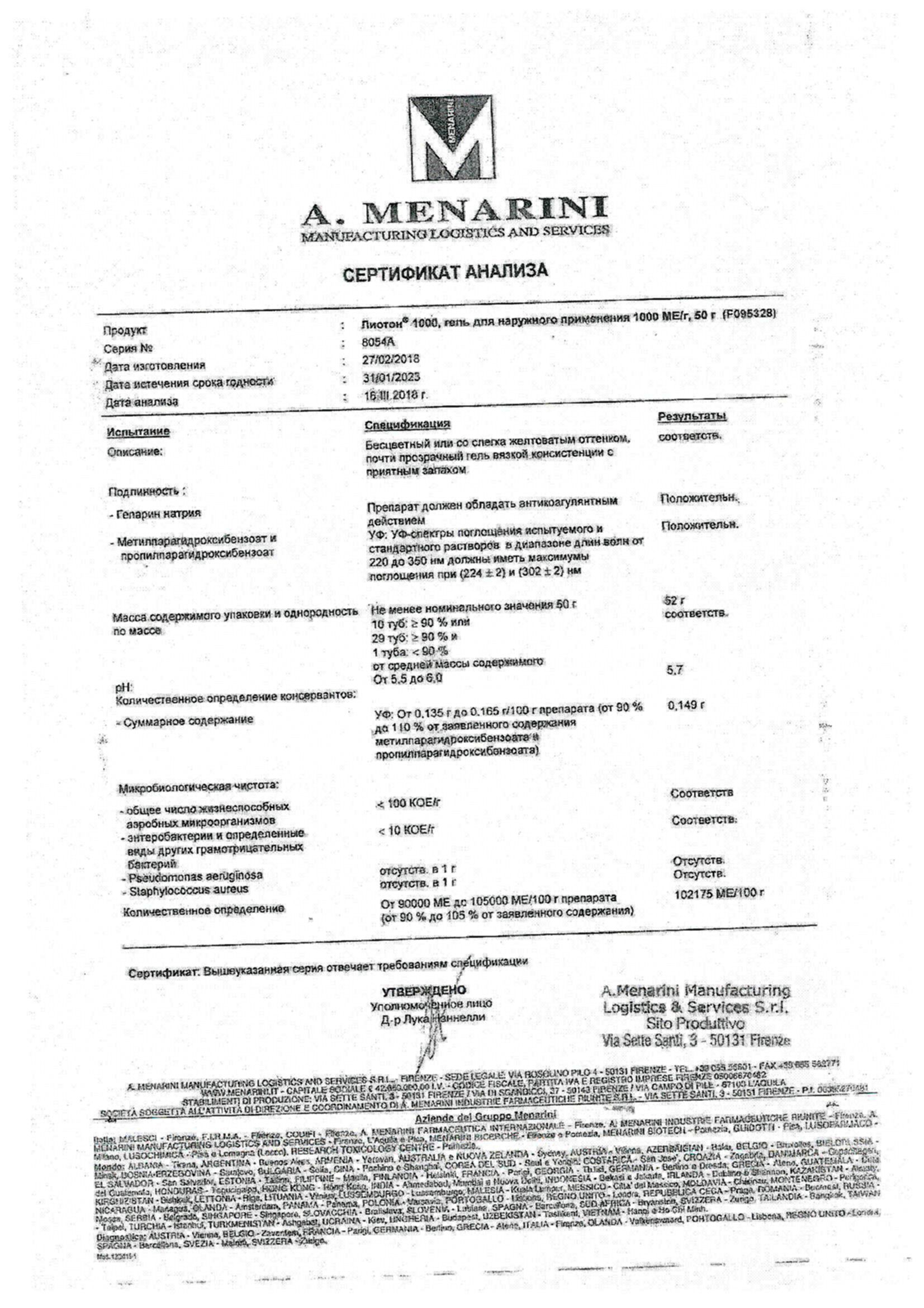 Гепарин натрия 1000 МЕ/г 50 г гель для наружного применения