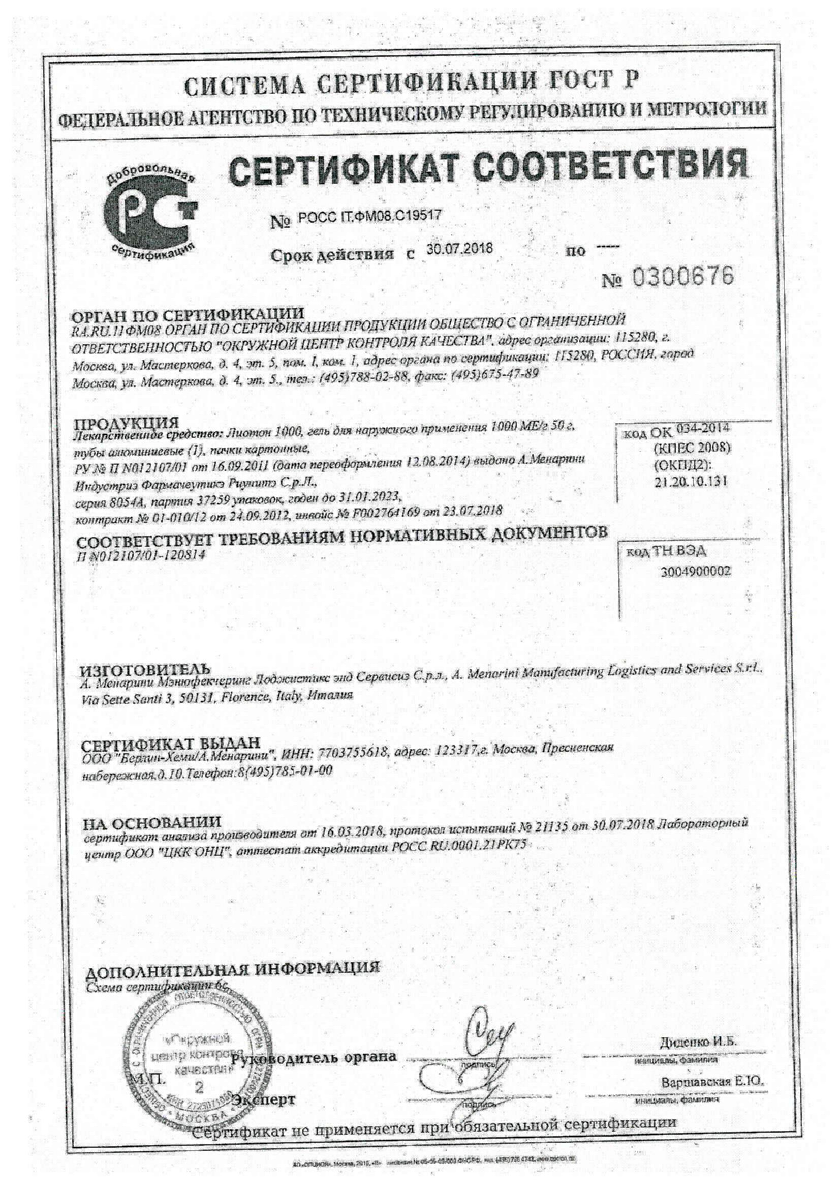Лиотон 1000 30 г гель для наружного применения