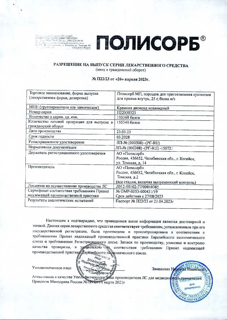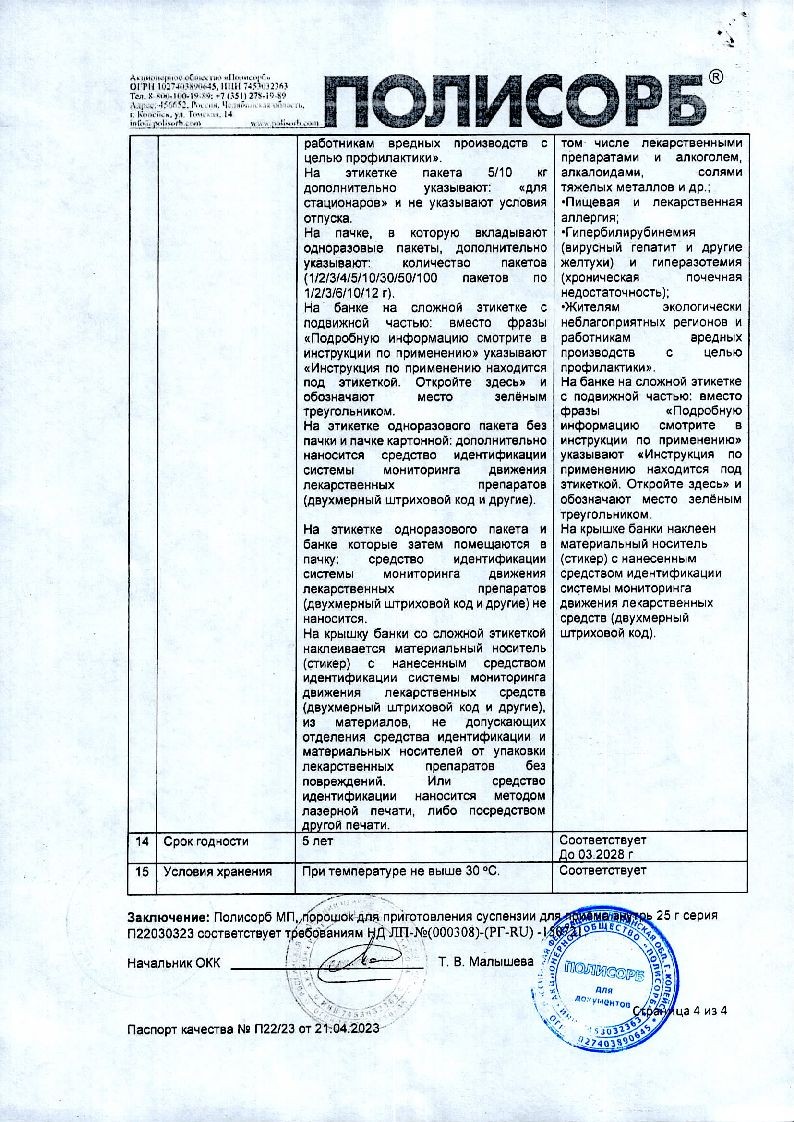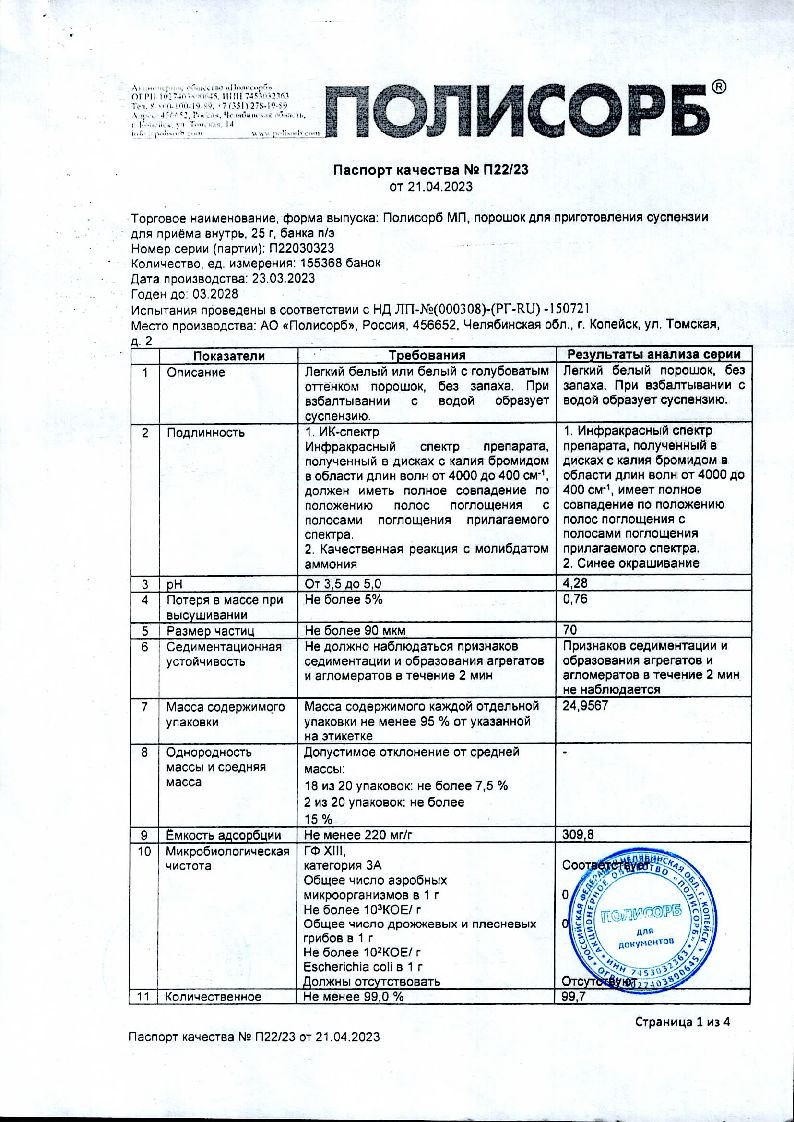 Полисорб МП 25 г порошок для приготовления суспензии для приема внутрь банка