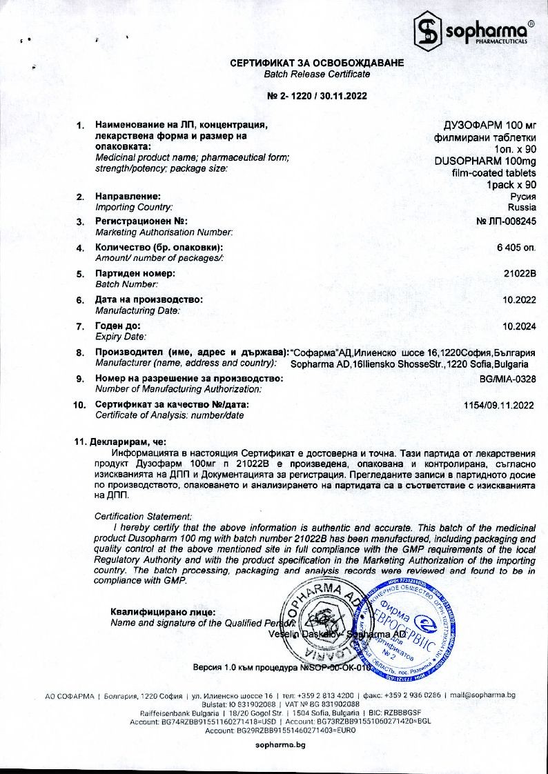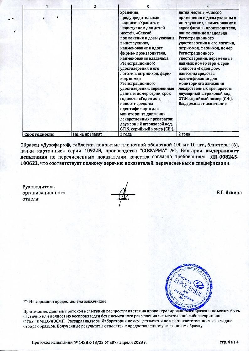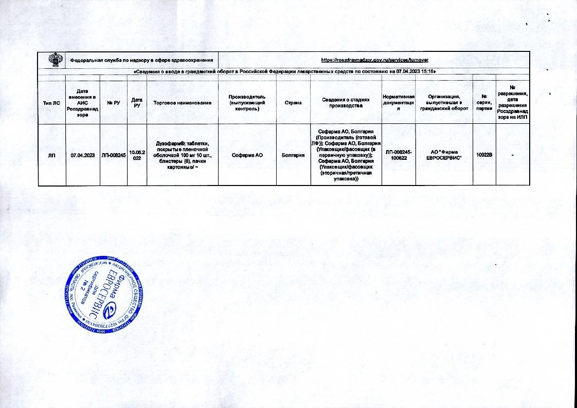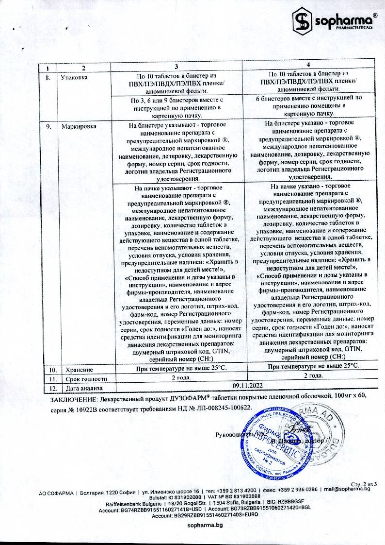 Дузофарм 100 мг 60 шт таблетки покрытые пленочной оболочкой
