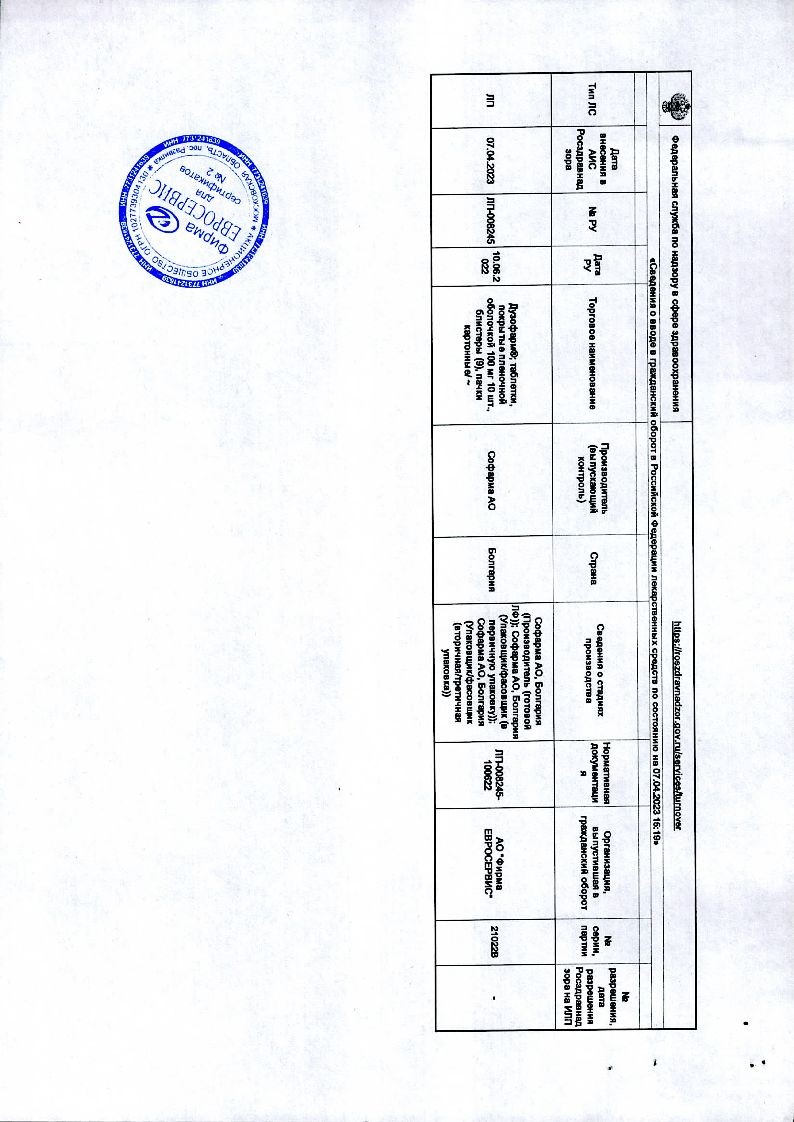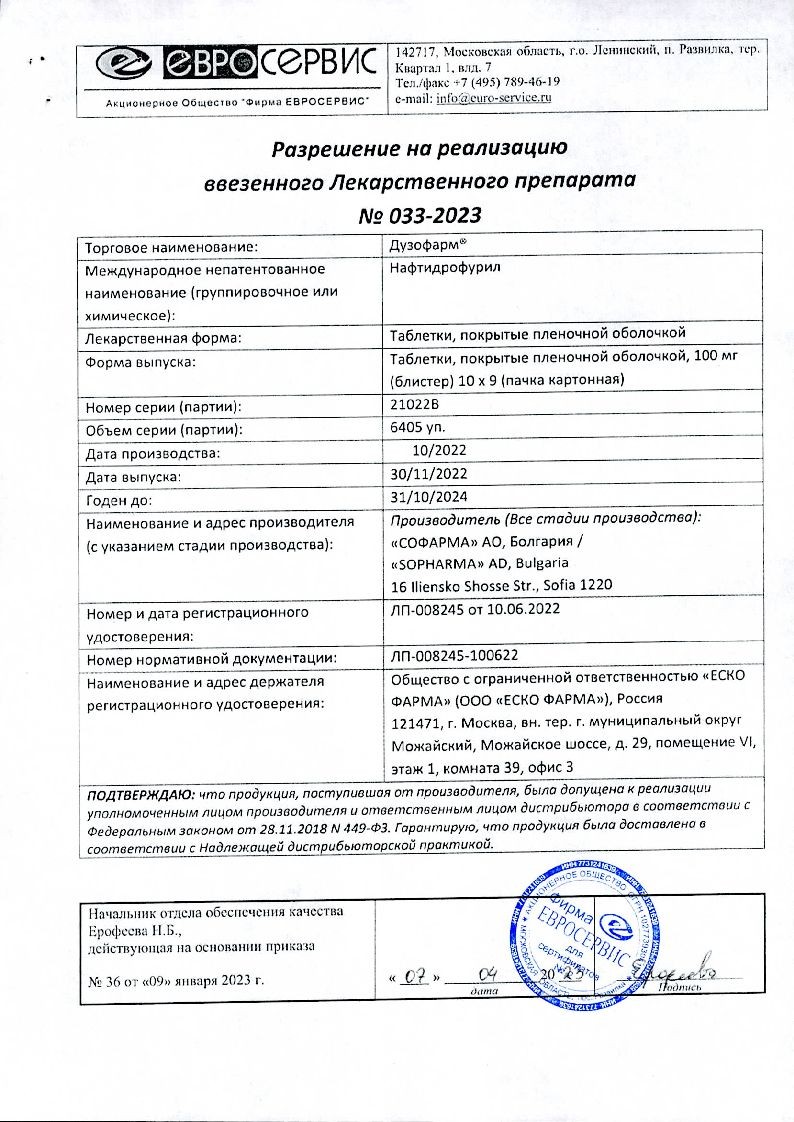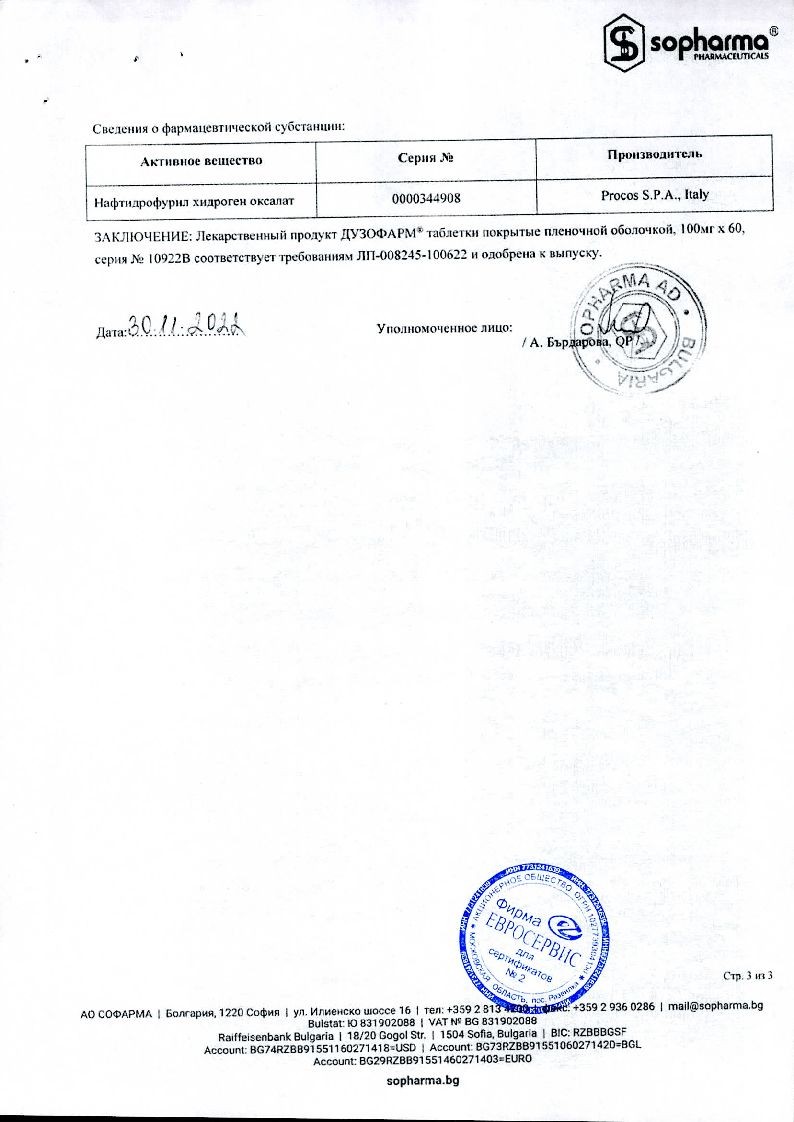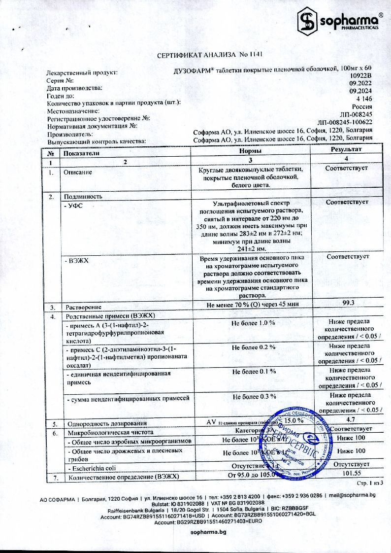 Дузофарм 100 мг 60 шт таблетки покрытые пленочной оболочкой