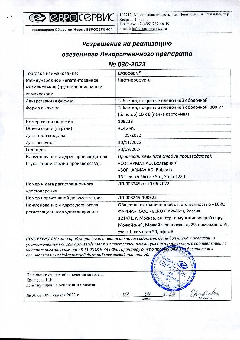 Дузофарм 100 мг 30 шт таблетки покрытые пленочной оболочкой