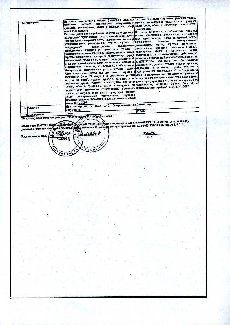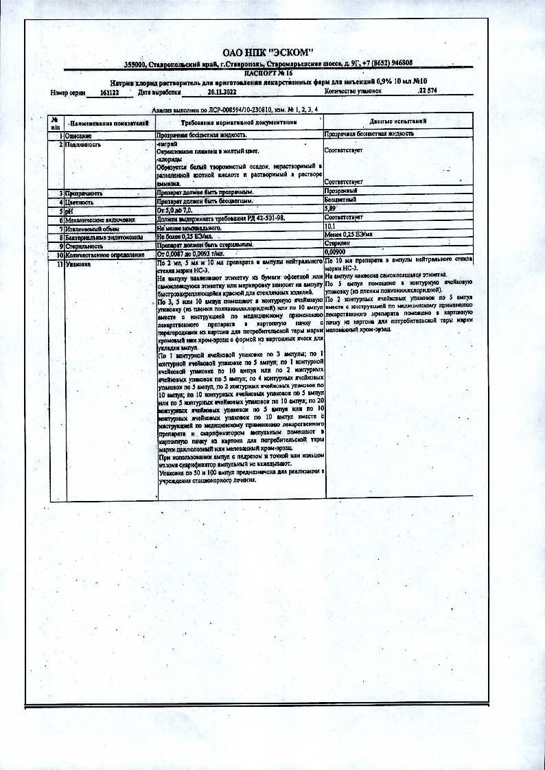 Натрия Хлорид 0,9 % 10 мл 10 шт раствор для инъекций ампулы