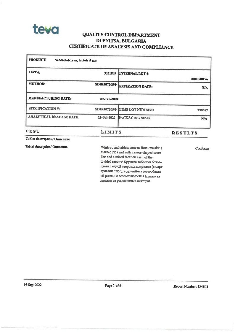 Небиволол 5 мг 14 шт таблетки