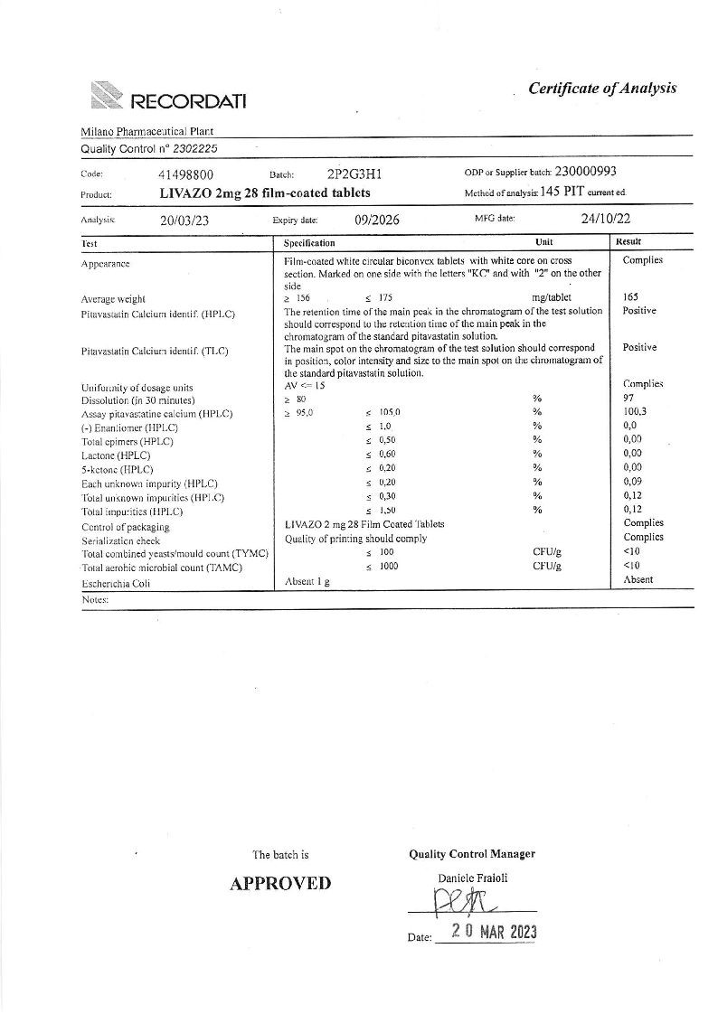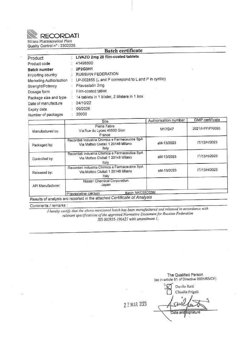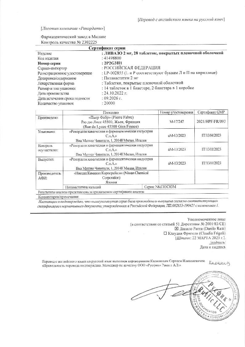 Ливазо 2 мг 90 шт таблетки покрытые пленочной оболочкой