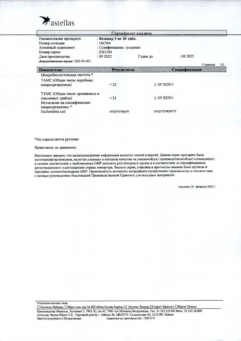 Везикар 5 мг 30 шт таблетки покрытые пленочной оболочкой