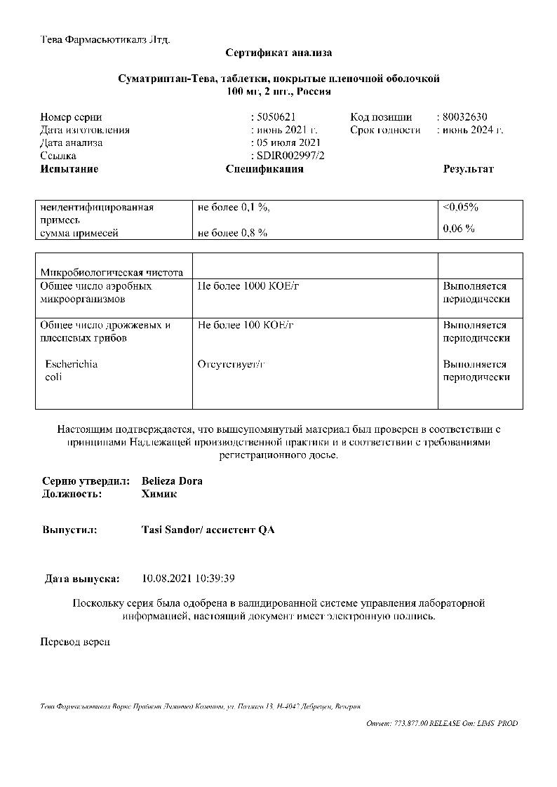 Суматриптан-Тева 100 мг 12 шт таблетки покрытые пленочной оболочкой