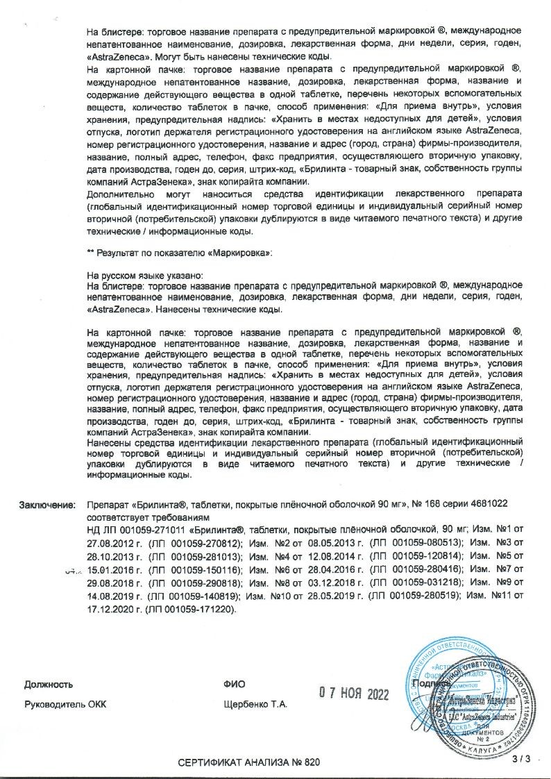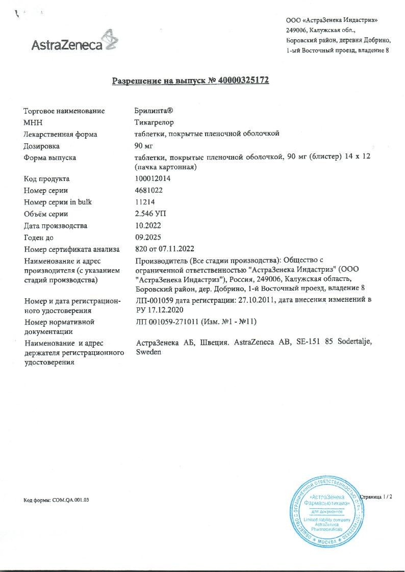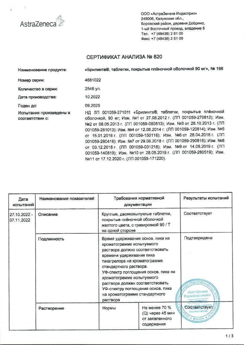 Брилинта 90 мг 168 шт таблетки покрытые пленочной оболочкой