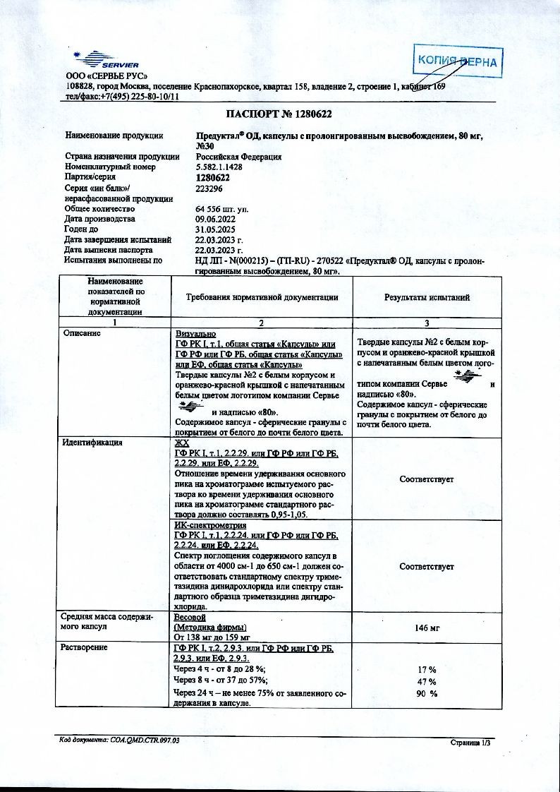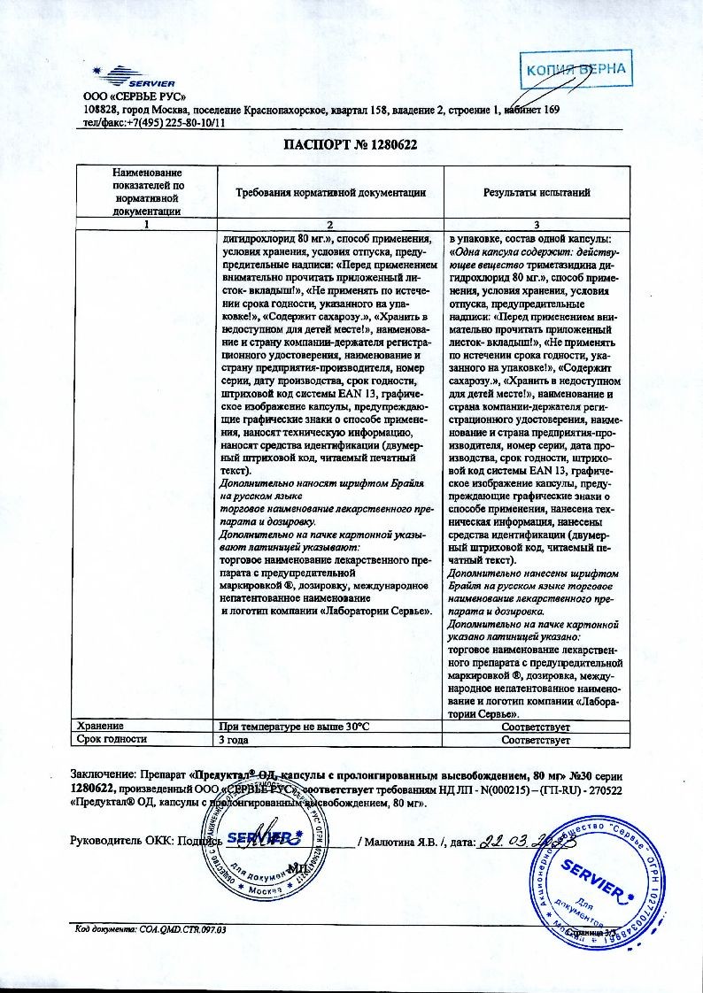Предуктал ОД 80 мг 30 шт капсулы с пролонгированным высвобождением