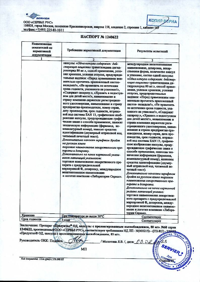 Предуктал ОД 80 мг 60 шт капсулы с пролонгированным высвобождением