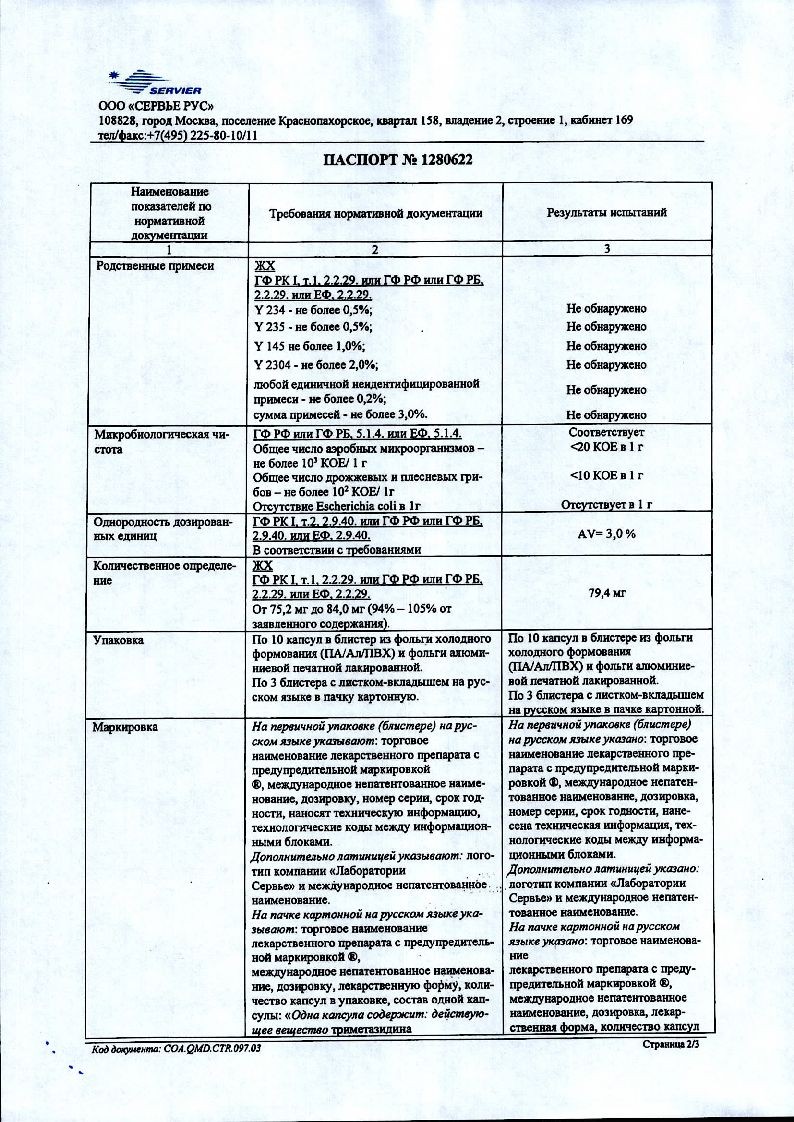 Тримектал МВ 35 мг 120 шт таблетки с модифицированным высвобождением покрытые пленочной оболочкой