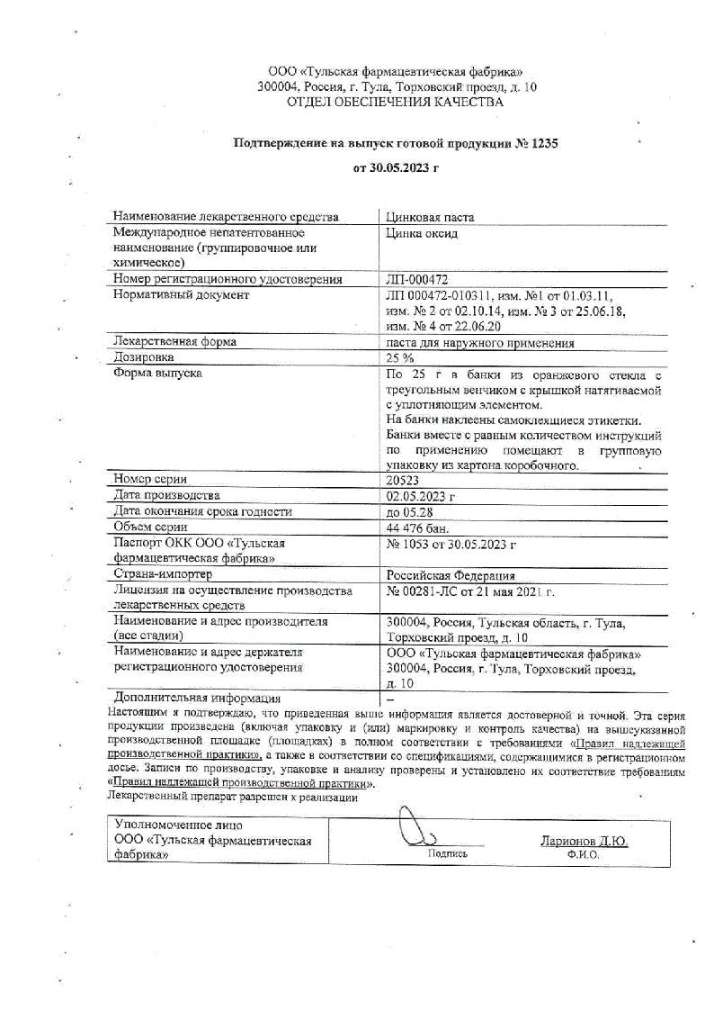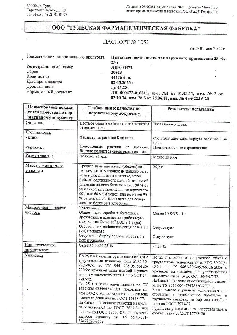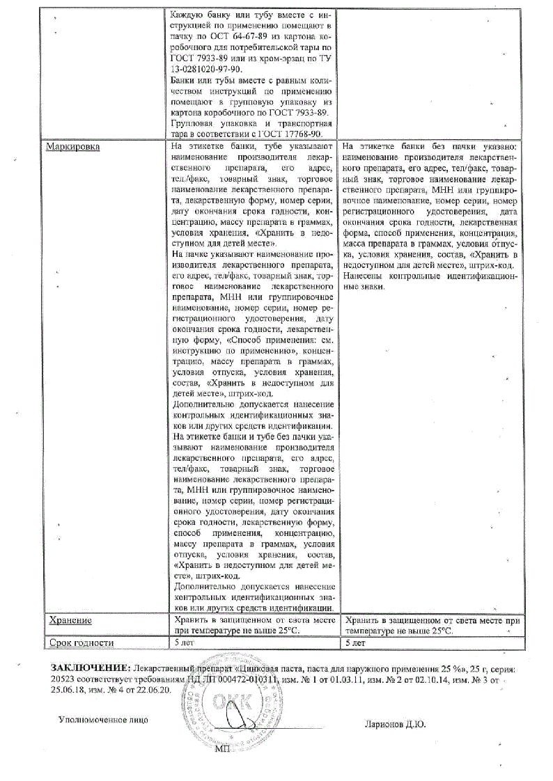 Цинковая мазь 10% 30 г мазь для наружного применения