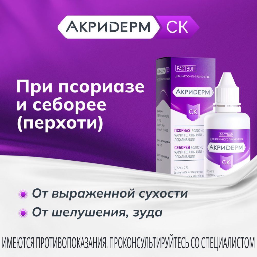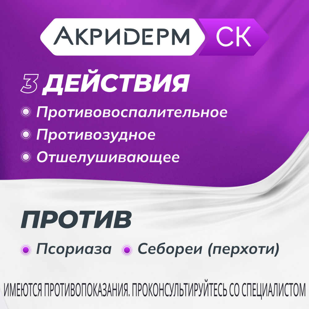 Акридерм® СК - комбинированный препарат, содержащий действующие вещества - бетаметазона дипропионат и салициловую кислоту.