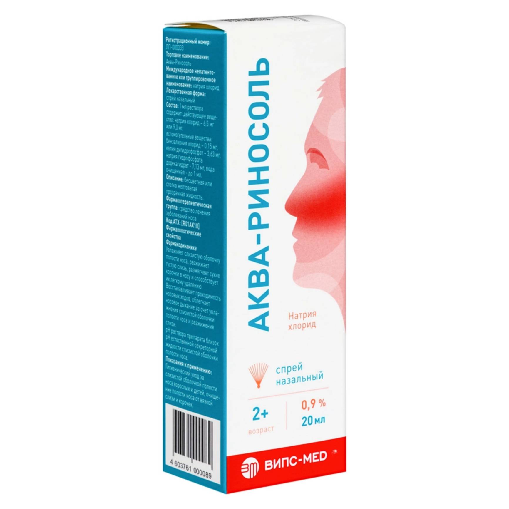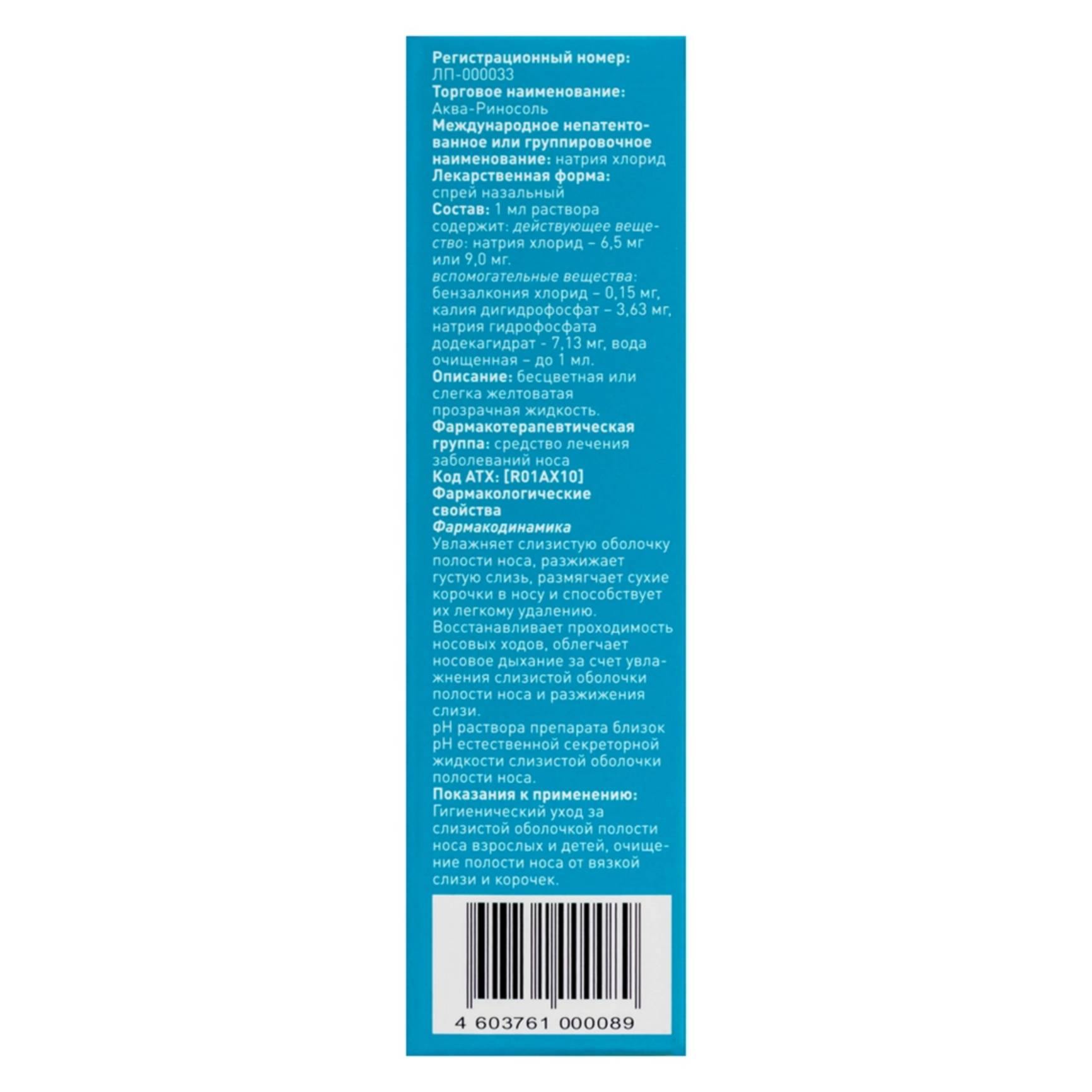 pH раствора препарата близок pH естественной секреторной жидкости слизистой оболочки полости носа.