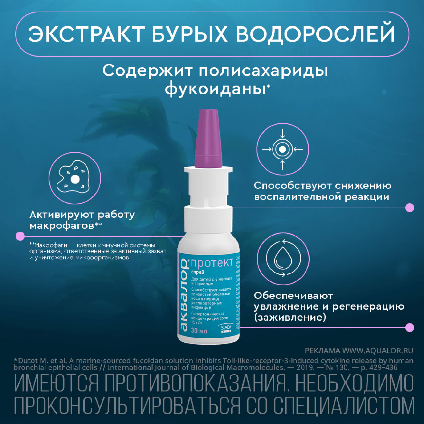 Для профилактики в период респираторных инфекций (грипп, ОРВИ) рекомендуется ежедневно впрыскивать «Аквалор протект» в каждый носовой ход один-два раза.