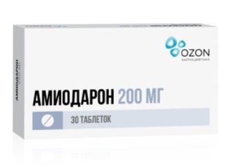Активное вещество: амиодарона гидрохлорид 200 мг.
