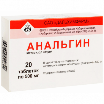 Активное вещество: метамизола натрия моногидрат (анальгин) - 500 мг.