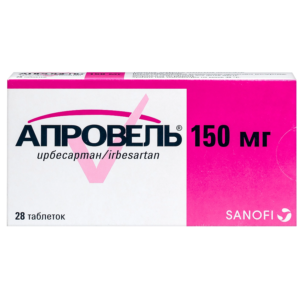 Безопасность препарата Апровель® изучалась в клинических исследованиях приблизительно у 5000 пациентов, включая 1300 пациентов с артериальной гипертензией, принимавших препарат в течение более 6 мес, и 400 пациентов, принимавших препарат в течение 1 года и более. Нежелательные явления у пациентов, принимавших Апровель®, обычно были умеренно выраженными и преходящими, и их частота не зависела от принимаемой дозы, а также от пола, возраста и расовой принадлежности.