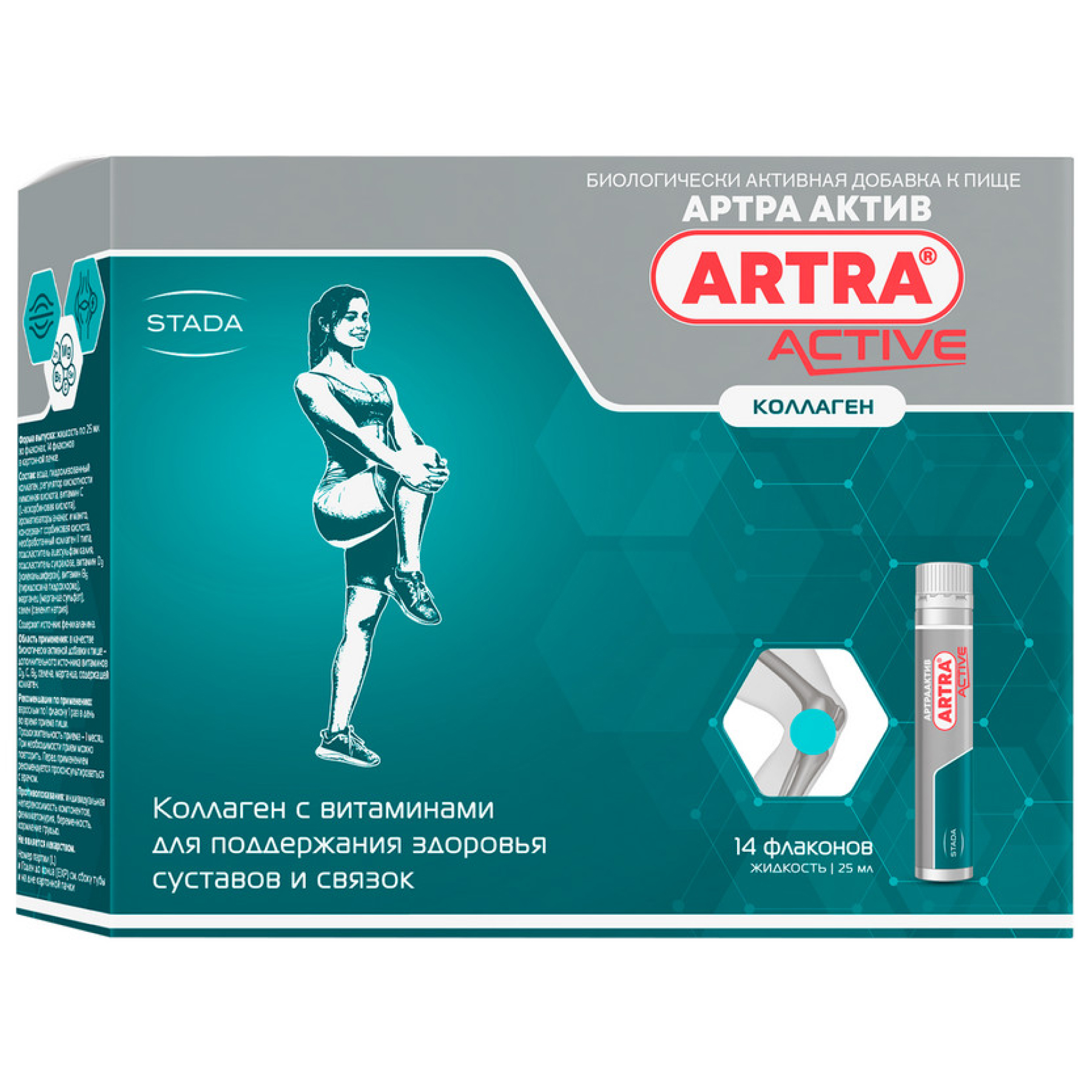 АРТРА АКТИВ - Биологически активная добавка (БАД) к пище - жидкая форма коллагена с витаминами для поддержания здоровья суставов и связок.