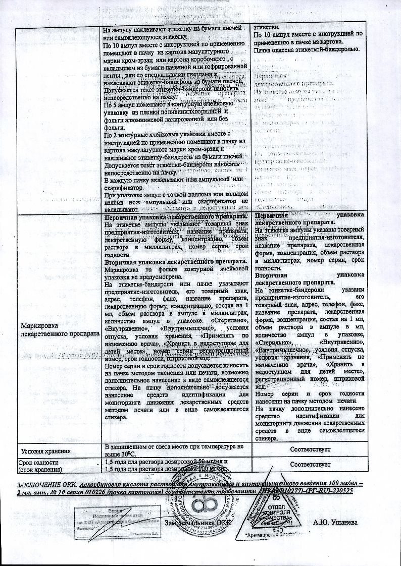 Для маркировки эритроцитов (совместно с натрия хроматом [51Сr]) - 100 мг аскорбиновой кислоты инъецируют во флакон с натрия хроматом [51Сr].