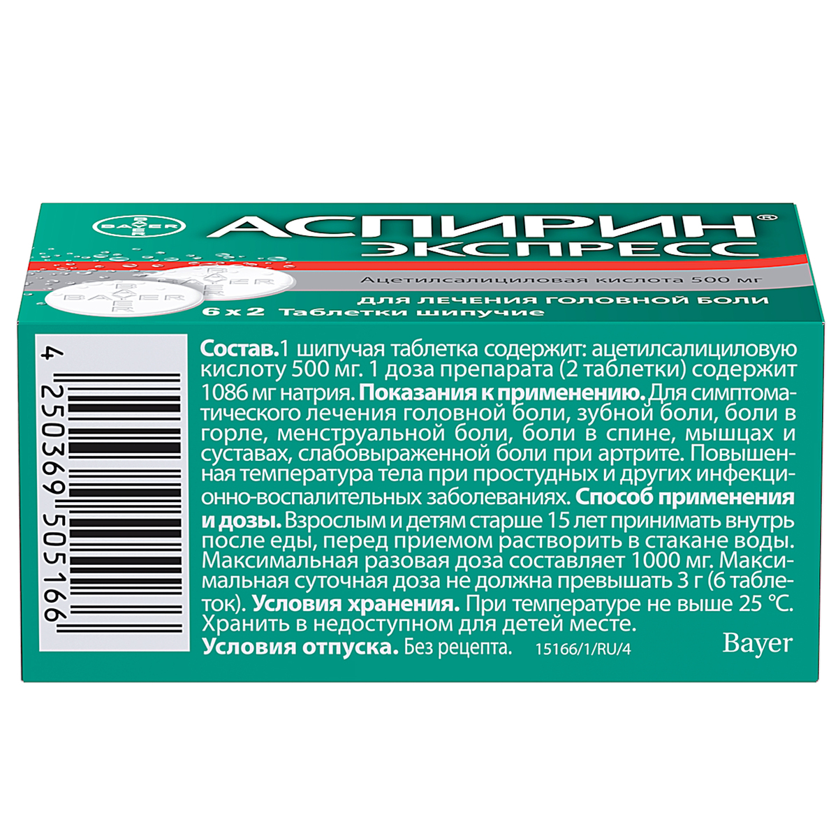 Активное вещество: ацетилсалициловая кислота 500 мг.