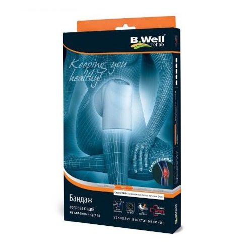 Согревающий бандаж для коленного сустава B.Well rehab W-338 из аэропрена, специального триплексного материала способствующего улучшению кровообращения и ускорению выздоровления, со специальной 6-ти слойной накладкой и усиливающей вставкой-кольцом. Многослойный материал бандажа: Внутренний упругий слой из микрокамер, обеспечивает теплосберегающий эффект, улучшает кровообращение, способствует стабилизации сустава и выздоровлению Слой, прилегающий к телу – из комфортного мягкого материала Наружный слой – из материала, с покрытием, предупреждающим загрязнение Усиливающая вставка - кольцо стабилизирует и защищает надколенник 6-ти слойная деталь нормализует биомеханику движений.
