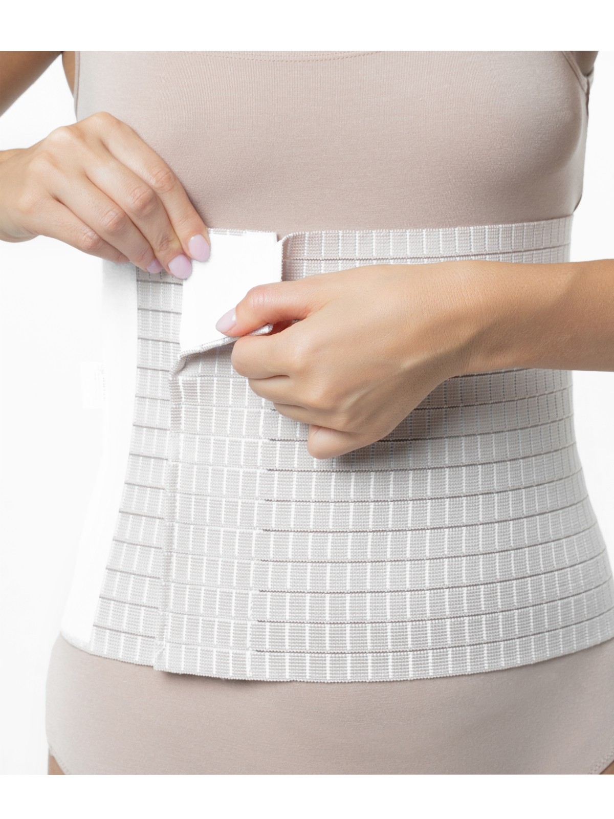 Абдоминальный бандаж — это широкий поддерживающий пояс из эластичного материала, который плотно обхватывает живот и фиксирует положение внутренних органов брюшной полости. Это помогает предотвратить возникновение послеоперационных грыж, ускоряет заживление ран и уменьшает болевые ощущения после операций. Так же ношение компрессионных бандажей часто назначают при травматических повреждениях в области живота.