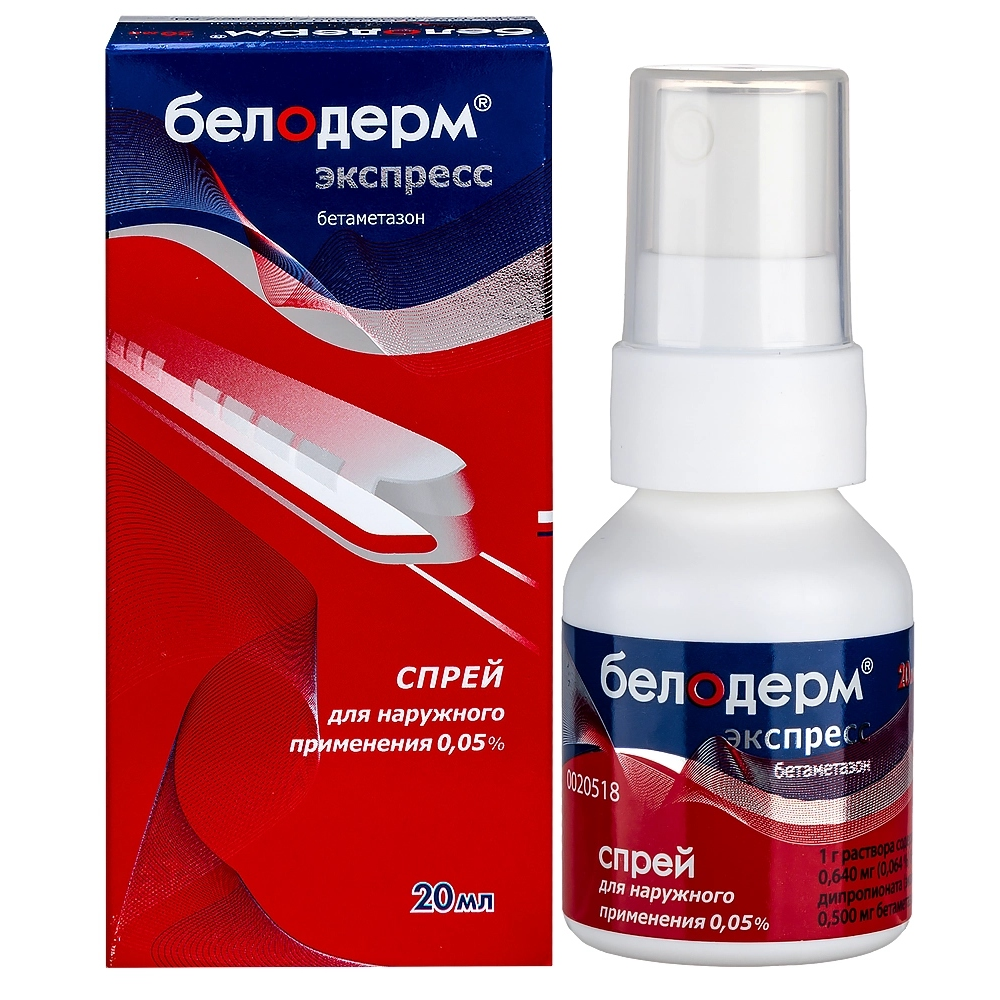 Белодерм® Экспресс в форме спрея предпочтителен для применения при острой форме дерматоза, в том числе сопровождающегося экссудацией (образованием мокнущих поверхностей).