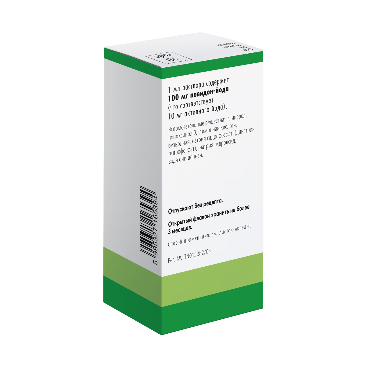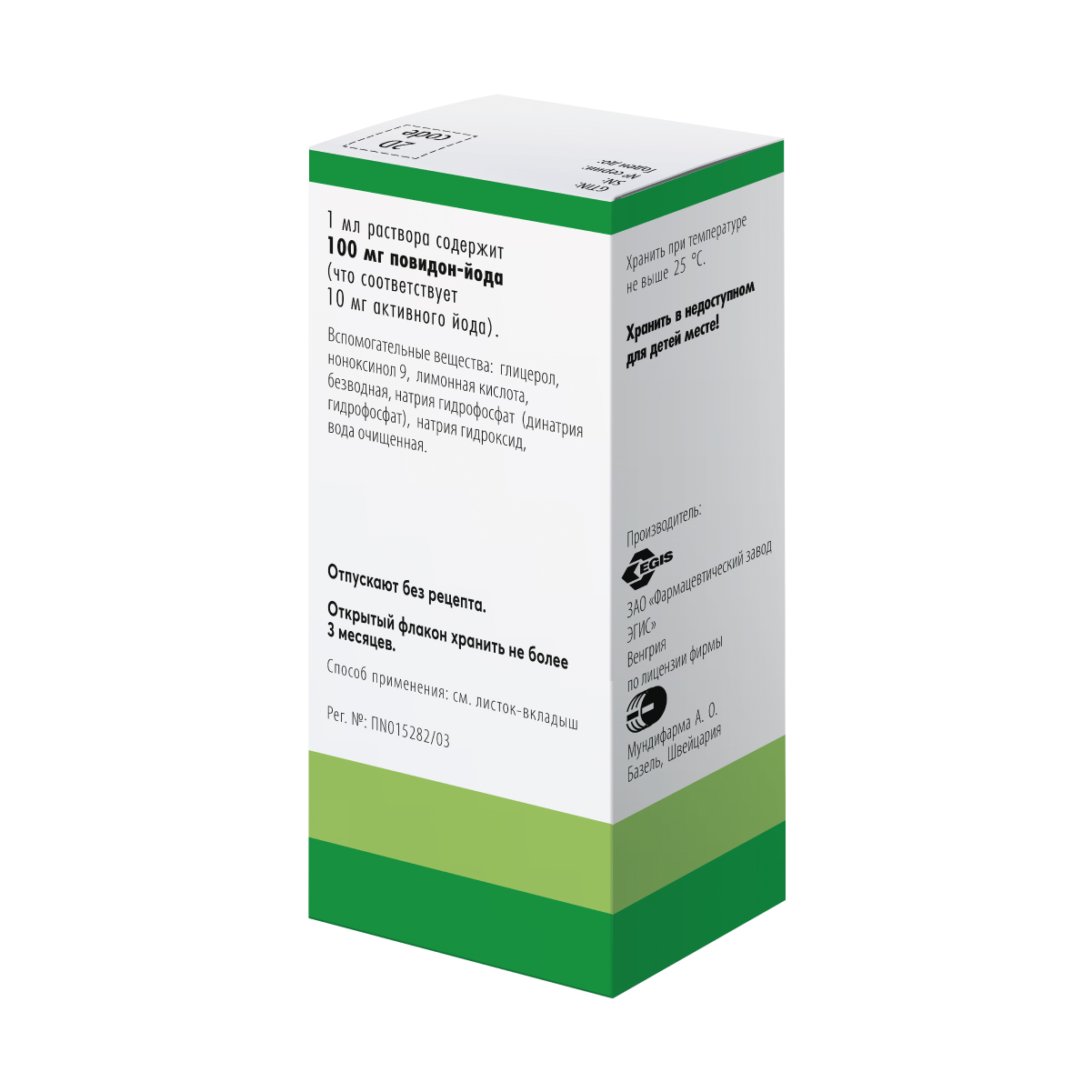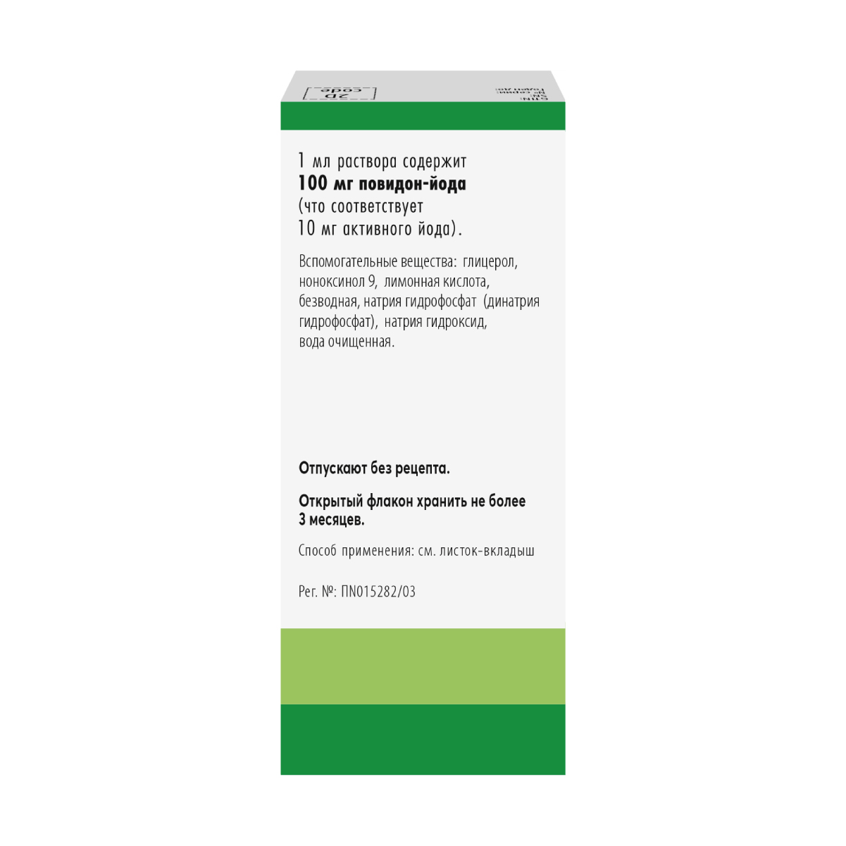 В месте применения образуется окрашенная пленка, сохраняющаяся до высвобождения всего количества активного йода, что означает прекращение действия препарата.
