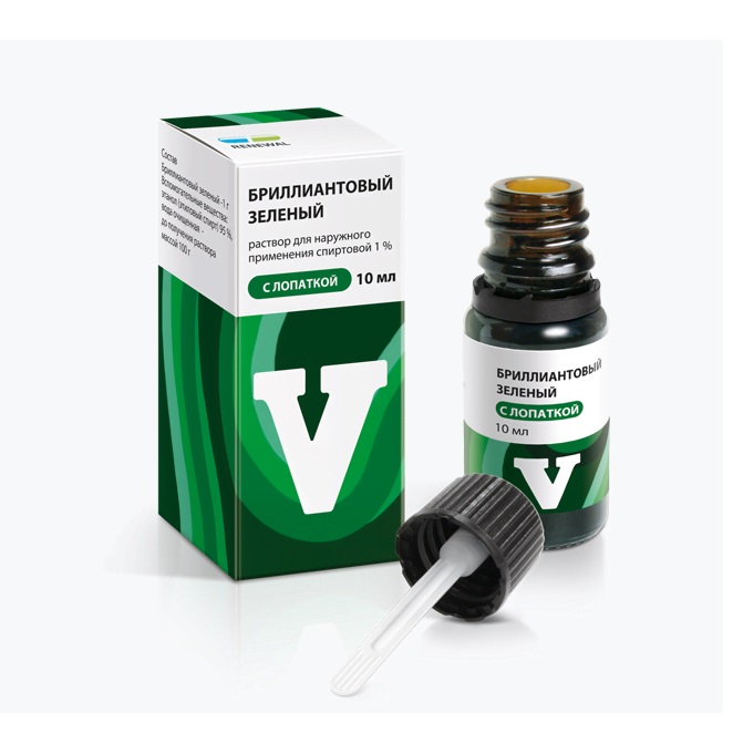 Раствор бриллиантового зеленого несовместим с дезинфицирующими средствами, содержащими активный йод, хлор, щелочи, включая раствор аммиака.
