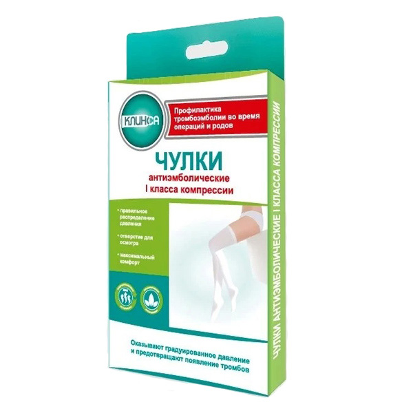 Лечебные чулки с распределенным давлением, разработаны специально для предотвращения тромбоэмболических проблем. Отверстие под пальцами позволяет контролировать состояние кровообращения ног. Рекомендованы для лежачих больных с нарушением кровообращения нижних конечностей до, во время и после операций и до, во время и после родов для профилактики тромбоэмболических осложнений. Лекарства местного действия можно наносить как на кожу ног под изделия, так и непосредственно на них, что не влияет на их компрессионные качества. Чулки хорошо и быстро надеваются, не образуют складок.