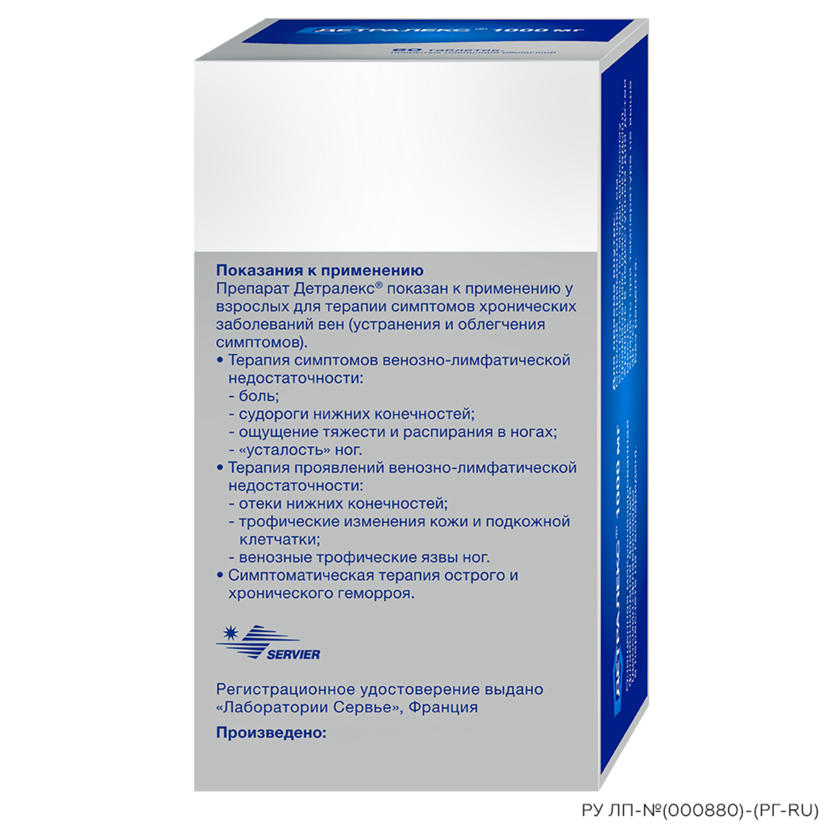 Препарат повышает венозный тонус: с помощью венозной окклюзионной плетизмографии было показано уменьшение времени венозного опорожнения. У пациентов с признаками выраженного нарушения микроциркуляции, после терапии таблетками Детралекс® отмечается (статистически достоверное по сравнению с плацебо) повышение капиллярной резистентности, оцененной методом ангиостереометрии.