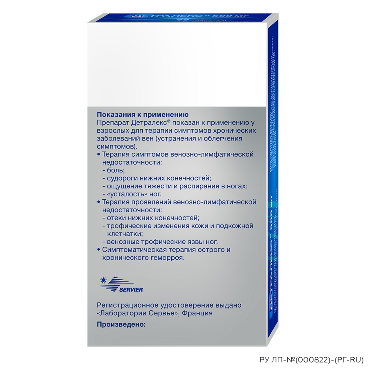 Детралекс® показан для терапии симптомов хронических заболеваний вен (устранения и облегчения симптомов).