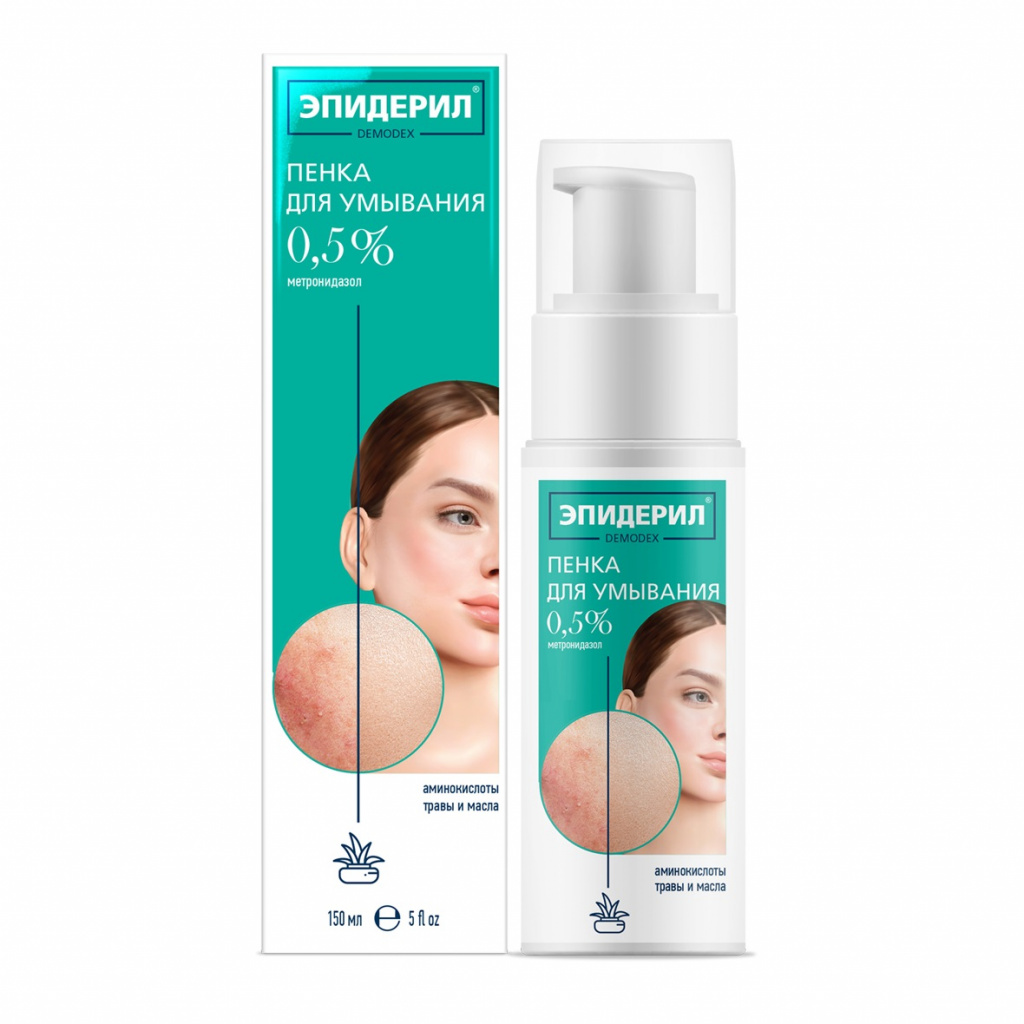 Пенка для умывания Эпидерил Demodex с метронидазолом и травами тщательно очищает проблемную кожу от декоративной косметики и загрязнений.