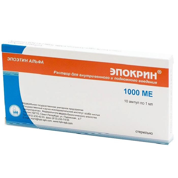1. Этап коррекции: При подкожном введении препарата Эпокрин®, начальная разовая доза составляет 30 МЕ/кг 3 раза в неделю. При внутривенном введении препарата Эпокрин® начальная разовая доза составляет 50МЕ/кг. Период коррекции длится до момента достижения оптимального уровня гемоглобина (100-120 г/л у взрослых и 95-110 г/л у детей) и гематокрита (30-35 %). Эти показатели необходимо контролировать еженедельно. Возможны следующие ситуации: